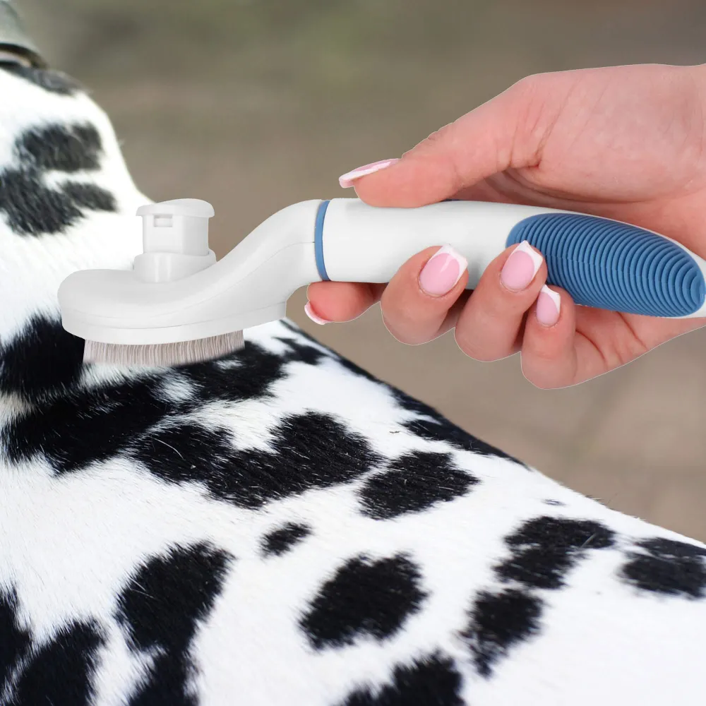 Použitie je jednoduché a hygienické. Stlačením tlačidla na zadnej strane sa ihličky zasunú , čo umožňuje rýchle odstránenie chlpov z kefy. Už žiadne zložité čistenie!