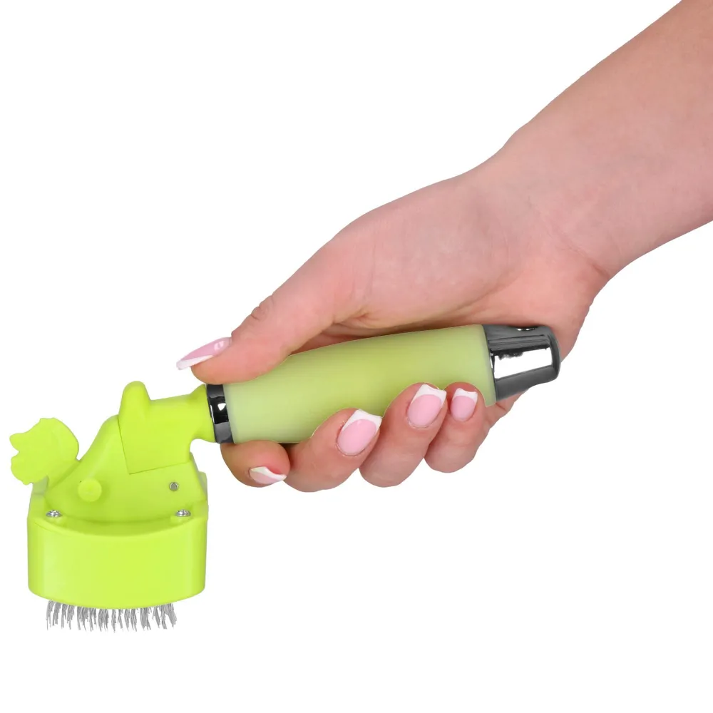 Použitie je jednoduché a hygienické. Stlačením tlačidla na zadnej strane a posunutím páčky smerom dozadu sa ihličky zasunú , čo umožňuje rýchle odstránenie chlpov z kefy. Už žiadne zložité čistenie!