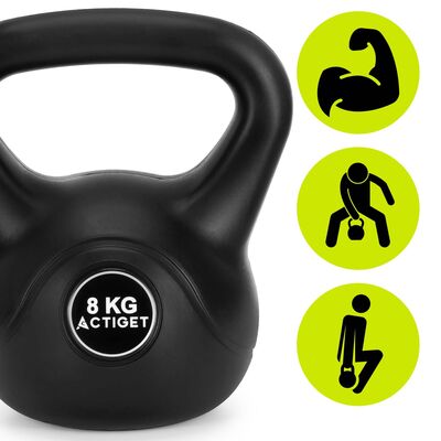 Kettlebell 8 kg ACTIGET ACT0082 je navrhnutý pre začiatočníkov i mierne pokročilých cvičencov, ktorí hľadajú spoľahlivé a odolné vybavenie. Vďaka kompozitnému zloženiu a tvrdenému ABS plášťu je veľmi odolný voči nárazom aj dlhodobému používaniu. Vnútorná cementová výplň zaisťuje stabilný tvar a dlhú životnosť, takže je vhodný ako do domácej posilňovne, tak do fitness centra.
