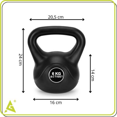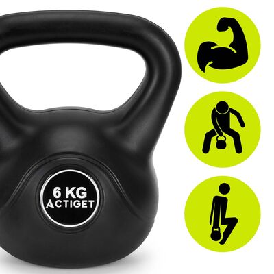 Kettlebell 6 kg ACTIGET ACT0081 je navrhnutý pre začiatočníkov aj mierne pokročilých cvičencov, ktorí hľadajú spoľahlivé a odolné vybavenie. Vďaka kompozitnému zloženiu a tvrdenému ABS plášťu je veľmi odolný voči nárazom aj dlhodobému používaniu. Vnútorná cementová výplň zaisťuje stabilný tvar a dlhú životnosť, takže je vhodný ako do domácej posilňovne, tak do fitness centra.