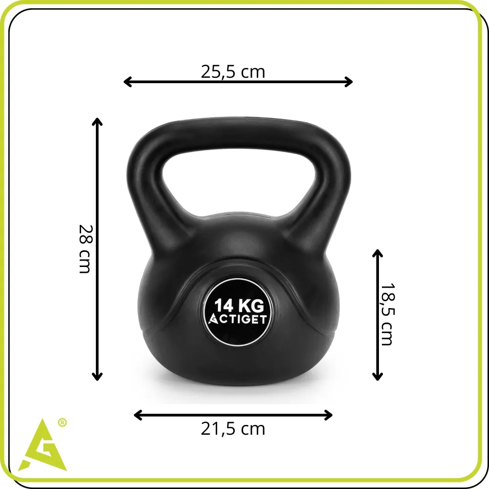 Kettlebell 14 kg ACTIGET ACT0085 je navrhnutý pre náročných cvičencov, ktorí hľadajú spoľahlivé a odolné vybavenie. Vďaka kompozitnému zloženiu a tvrdenému ABS plášťu je veľmi odolný voči nárazom aj dlhodobému používaniu. Vnútorná cementová výplň zaisťuje stabilný tvar a dlhú životnosť, takže je vhodný ako do domácej posilňovne, tak do profesionálneho fitness prostredia.