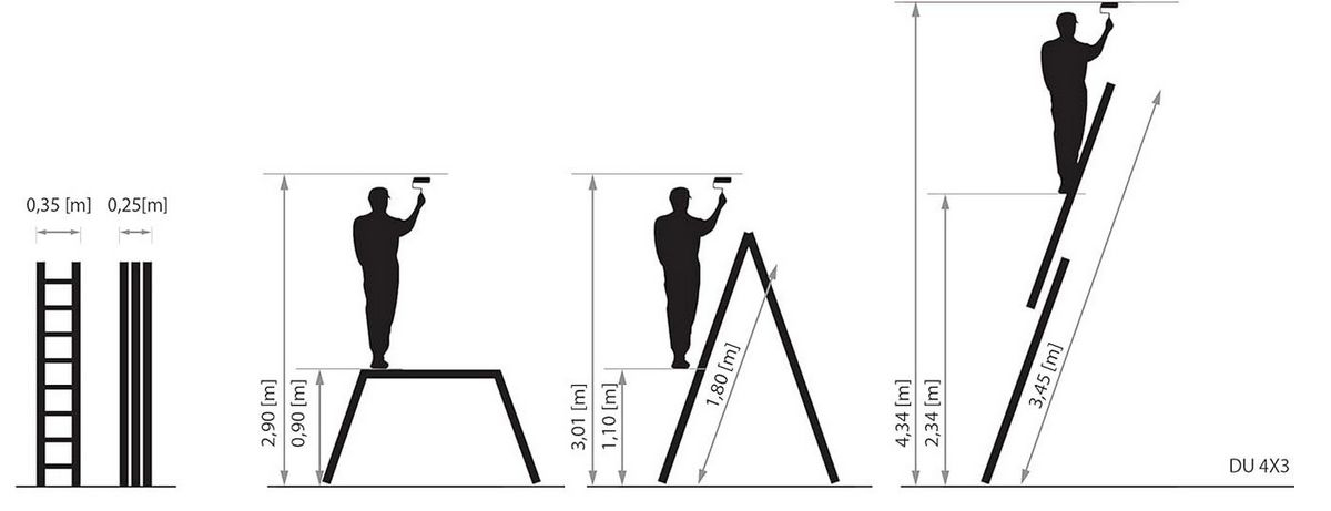 Nezáleží na tom, či ste profesionál alebo domáci majster, tento rebrík bude určite nepostrádateľným pomocníkom pri akejkoľvek práci. Vďaka pohyblivým kĺbom ho môžete zostaviť v 7 rôznych kombináciách.