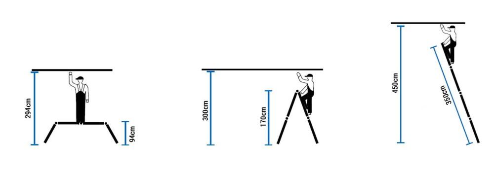 Nezáleží na tom, či ste profesionál alebo domáci majster, tento rebrík bude určite nepostrádateľným pomocníkom pri akejkoľvek práci. Vďaka pohyblivým kĺbom ho môžete zostaviť v 7 rôznych kombináciách.
