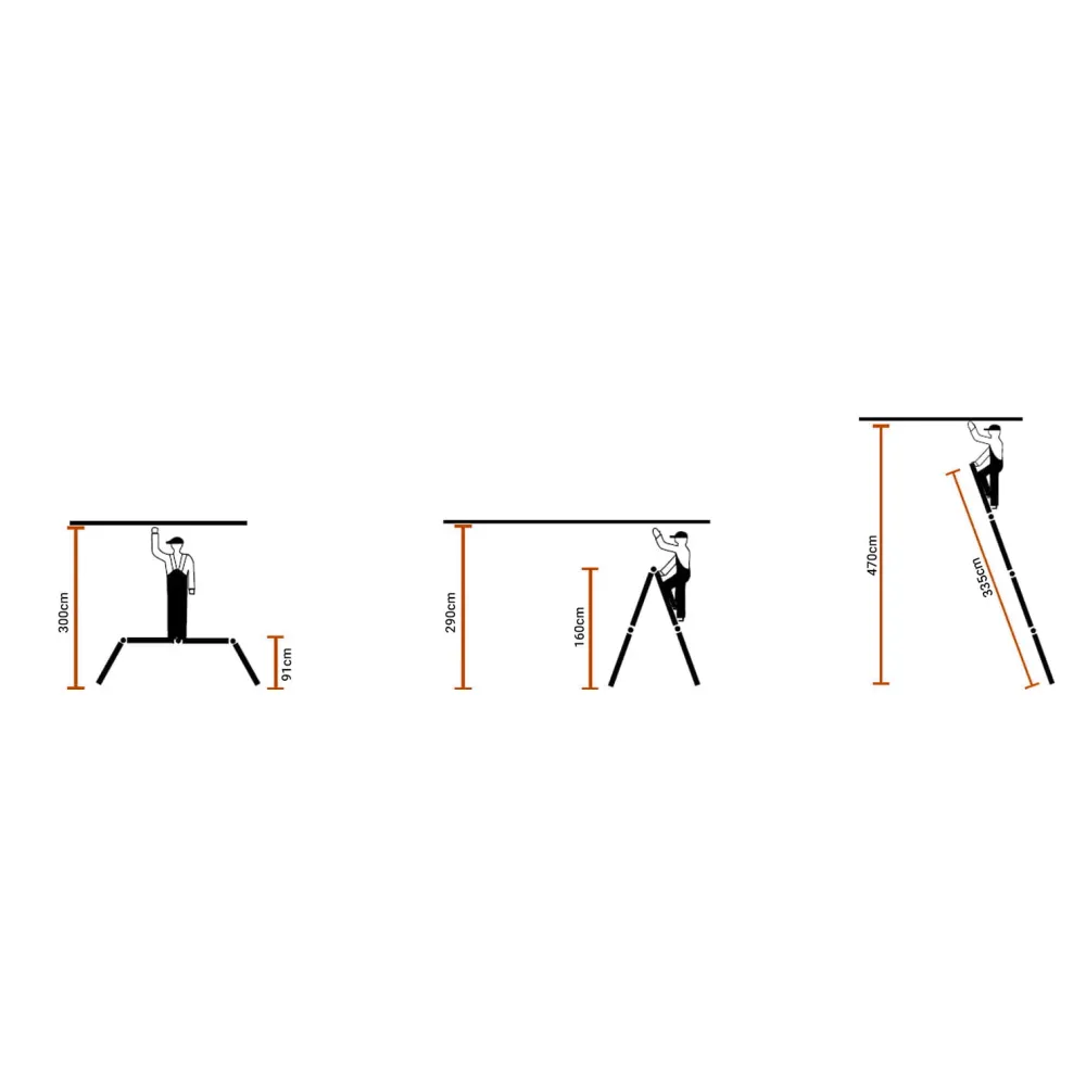 Profesionálny kĺbový rebrík s výsuvnými priečkami a protišmykovou plošinou. Dokonalá kombinácia kĺbového a teleskopického rebríka. Obrovský pracovný rozsah a možností zostavenia, vrátane funkcie schodiskového rebríka. Kompaktný, pevný a univerzálny model s dvoma stabilizátormi a certifikáciou. 4x3 priečky, výška plošiny 0,91 m, max. dĺžka 3,35 m, max. pracovná výška 4,70 m, nosnosť 150 kg. Ľahko prenosný a úplne multifunkčný rebrík na prácu vo výškach. Vhodný na každodenné intenzívne používanie na stavbe, okolo domu alebo na záhrade.