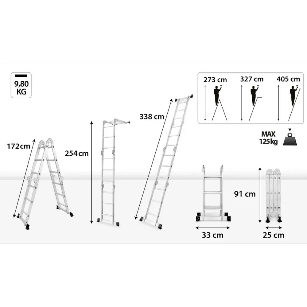 Nezáleží na tom, či ste profesionál alebo domáci majster, tento rebrík bude určite nepostrádateľným pomocníkom pri akejkoľvek práci. Vďaka pohyblivým kĺbom ho môžete zostaviť v 7 rôznych kombináciách.