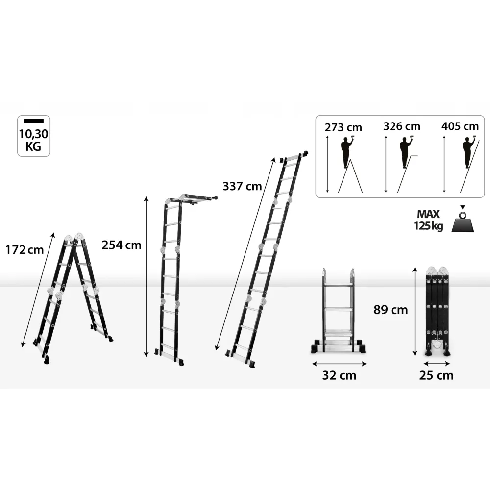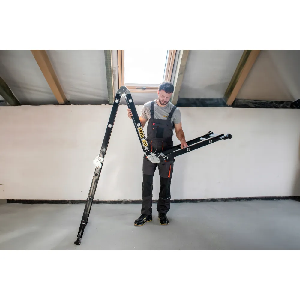 Nezáleží na tom, či ste profesionál alebo domáci majster, tento rebrík bude určite nepostrádateľným pomocníkom pri akejkoľvek práci. Vďaka pohyblivým kĺbom ho môžete zostaviť v 7 rôznych kombináciách.