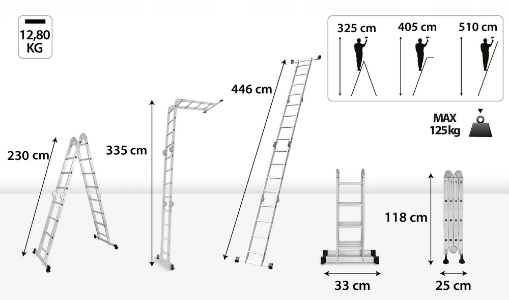 Nezáleží na tom, či ste profesionál alebo domáci majster, tento rebrík bude určite nepostrádateľným pomocníkom pri akejkoľvek práci. Vďaka pohyblivým kĺbom ho môžete zostaviť v 7 rôznych kombináciách.