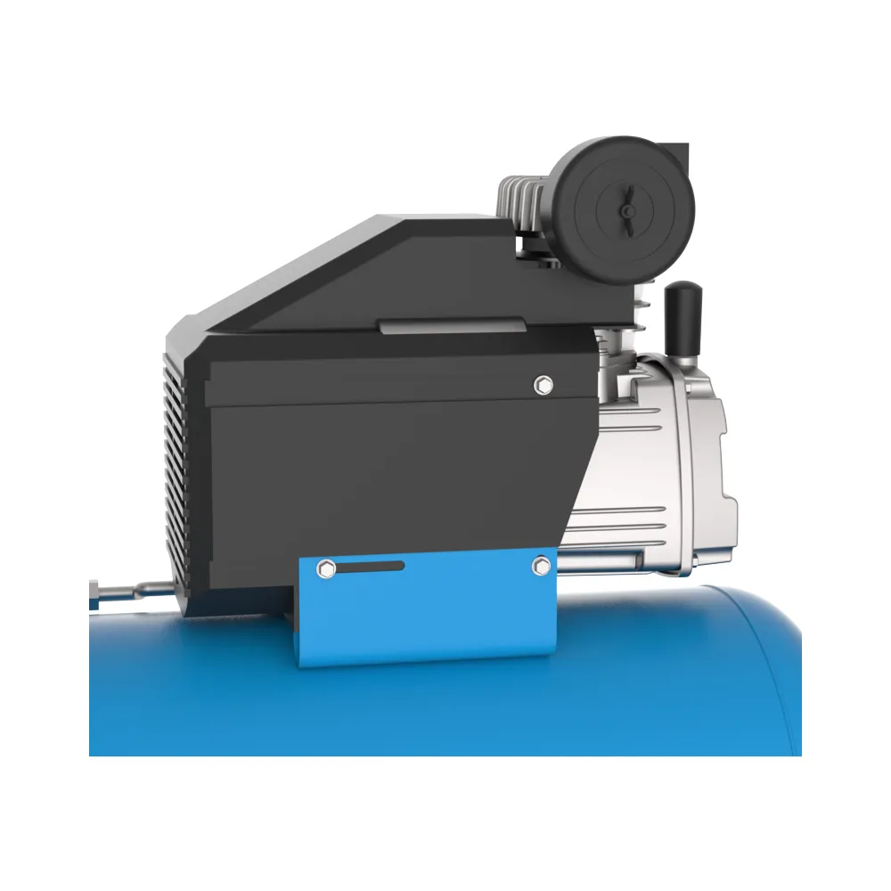 Jednovalcový piestový kompresor s olejovým mazaním, priamy pohon, dva manometre (manometer na meranie tlaku v nádobe a manometer na meranie pracovného tlaku), jedna spojka na stlačený vzduch, redukčný, bezpečnostný a spätný ventil, vzduchový filter, transportná rukoväť. Nožičky s gumovým dorazom, plastové kolesá.
