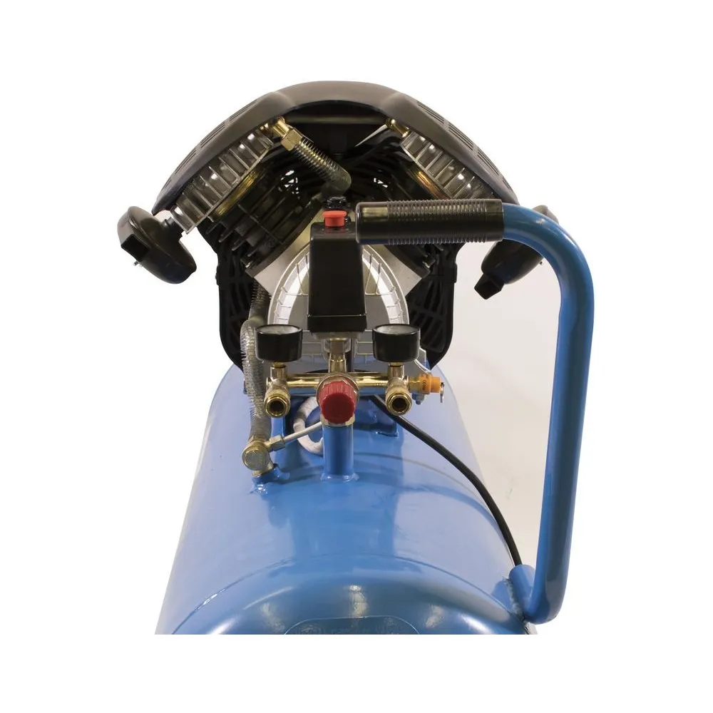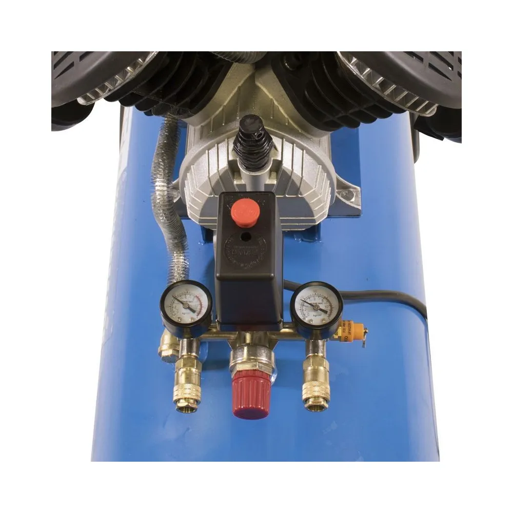 Dvojvalcový V-agregát s olejovým mazaním, s priamym pohonom. Tlakový spínač, manometer tlaku v nádobe a manometer pracovného tlaku, 2 spojky...
