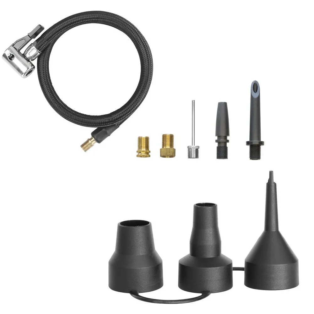 Akumulátorový kompresor a pumpa s príslušenstvom zo série akumulátorového náradia 18V E3. Kompresor na fúkanie vysokým tlakom, napríklad pneumatiky a nafukovacie hračky alebo športové potreby. Prednastavenie tlaku s automatickým vypnutím, LCD displej s manometrom v jednotkách bar alebo psy. Telo s pogumovaným držadlom, LED pracovné osvetlenie, hadice a 3 adaptéry. Pumpa na fúkanie veľkým množstvom vzduchu, napríklad nafukovacích člnov, nafukovacích matracov a podobne, vhodná aj na odčerpávanie/odsávanie vzduchu. Telo s pogumovaným držadlom, 3 adaptéry. Bez akumulátora a nabíjačky.