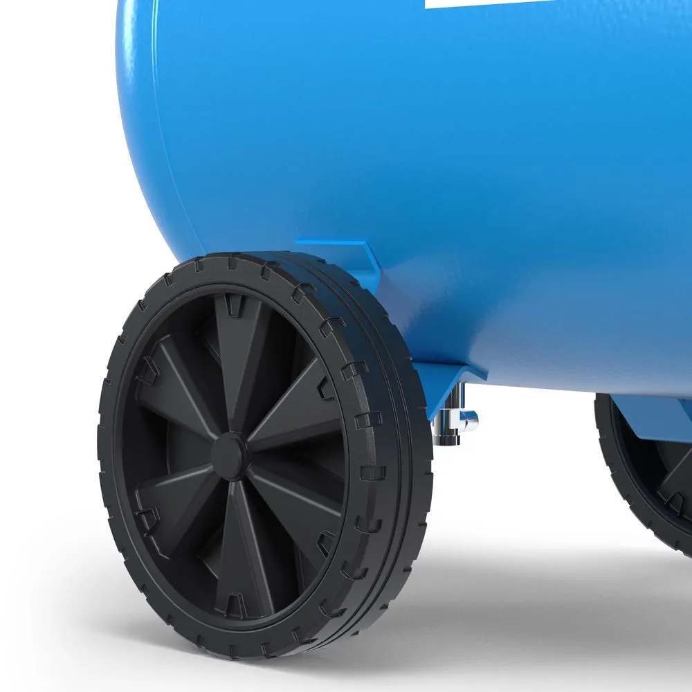 Výkonný dvojvalcový agregát s olejovým mazaním a remeňovým pohonom so sacím výkonom 650 litrov za minútu zaisťuje dostatok vzduchu pri požadovanom pracovnom tlaku. Tlakový spínač spoľahlivo a automaticky reguluje rozsah tlaku 8 – 10 bar. Pomocou redukčného ventilu zaisťuje jednoduché nastavenie pracovného tlaku. Vďaka manometru na meranie tlaku v nádobe a manometru na meranie pracovného tlaku budete mať vždy dokonalý prehľad. Dve spojky na stlačený vzduch zaisťujú flexibilné pripojenie. Bezpečnostný ventil, spätný ventil a skrutka na vypúšťanie kondenzátu zaisťujú bezpečnosť a čistotu. Transportná rukoväť uľahčuje prepravu. Integrovaný vzduchový filter aj odlučovač vody s filtrom zaisťujú čistý a suchý vzduch. Ochrana proti preťaženiu a chladič plniaceho vzduchu zaručujú dlhodobú prevádzku. Zariadenie sa ľahko premiestňuje na stabilných plastových kolesách a dvoch otočných kolieskach.