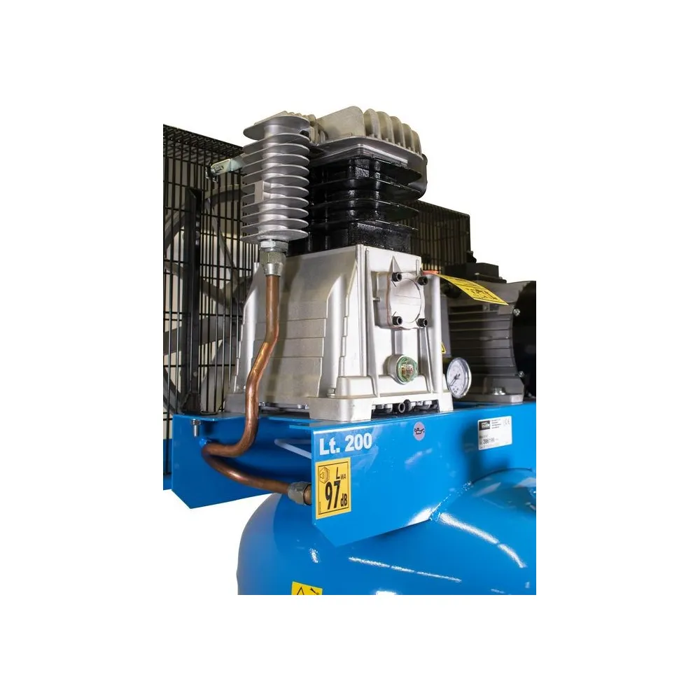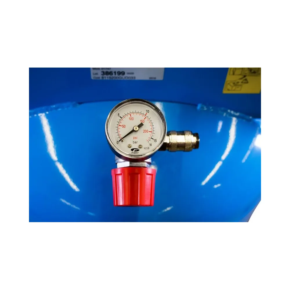 Jednovalcový kompresor s olejovým mazaním, s priamym pohonom. Tlakový spínač, manometer tlaku v nádobe a manometer pracovného tlaku, 2 spojky...