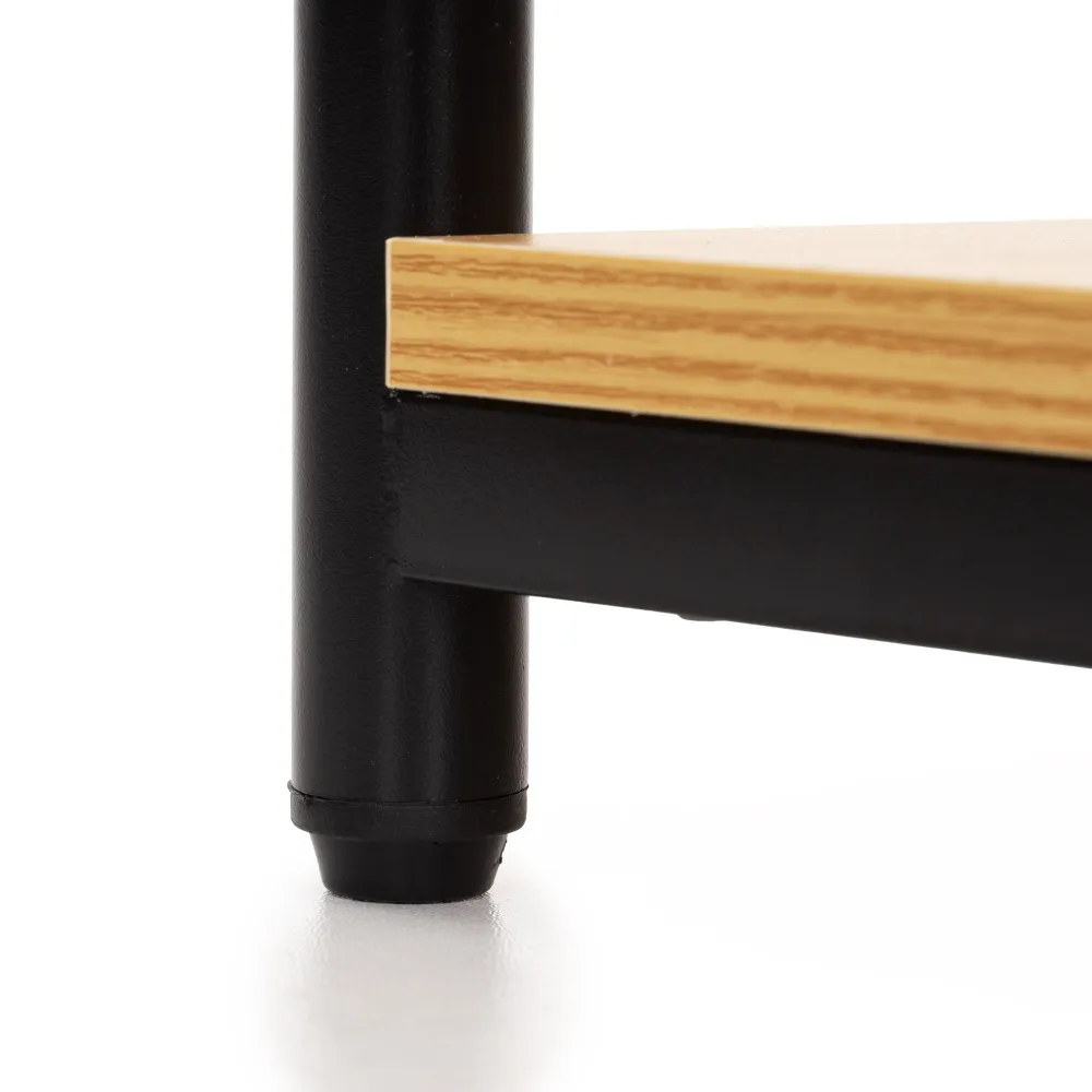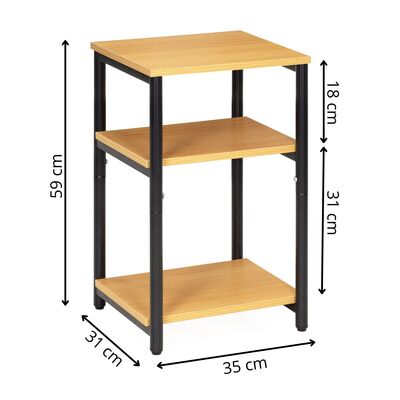 Štýlový doplnok do spálne vo svetlo hnedom prevedení s kontrastnou kovovou konštrukciou vytvára pevné a prehľadné miesto na každodenné odkladanie. Tri otvorené úrovne poskytujú priestor pre knihu, telefón, lampičku aj dekorácie. Vďaka kompaktným rozmerom sa hodí aj k menším posteliam a prirodzene zapadne do moderného interiéru. Rozmery: 59x35x31 cm.