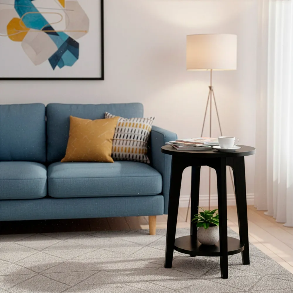 Stolík ponúka pevnú a stabilnú konštrukciu , ktorá zaisťuje bezpečné používanie. Spodná odkladacia polica poskytuje ďalší priestor pre knihy, časopisy alebo dekorácie. Vďaka kompaktným rozmerom a jednoduchej údržbe je vhodný aj do menších bytov a každodennej prevádzky.