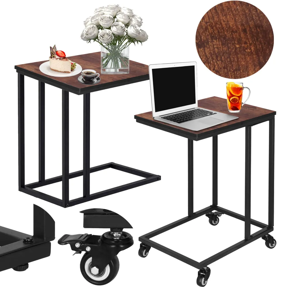 Stolíky sú navrhnuté s ohľadom na maximálnu praktickosť. Sú vybavené pojazdovými kolieskami s brzdou , ktoré umožňujú ich ľahké presúvanie a zaistenie stability pri používaní. Toto flexibilné riešenie oceníte najmä pri zmenách v usporiadaní miestnosti alebo pri servírovaní občerstvenia hosťom. Kovová konštrukcia stolov zaisťuje dlhú životnosť a stabilitu, čo je doplnené kvalitnou laminovanou doskou v hnedej farbe. Povrchová úprava stola nielenže vyzerá štýlovo, ale zároveň je vysoko odolná voči poškriabaniu, vlhkosti a ľahko sa udržuje čistá.
