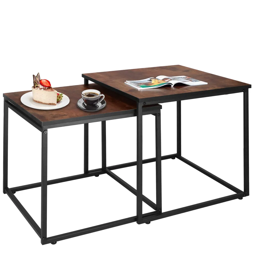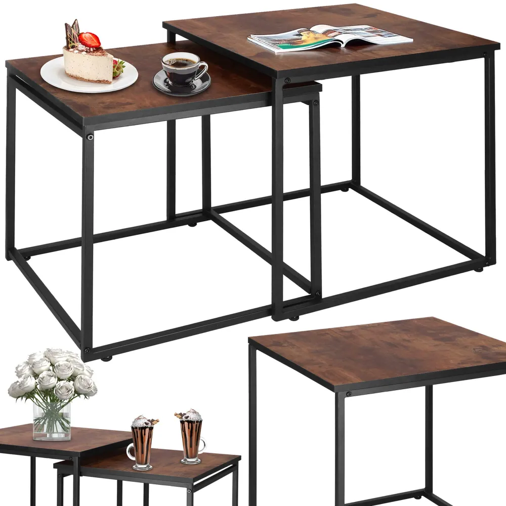 Súprava konferenčných stolíkov ponúka praktické zásuvné prevedenie, ktoré šetrí priestor a umožňuje variabilitu použitia. Ľahká konštrukcia zaisťuje jednoduchú manipuláciu, zatiaľ čo pevný kovový rám a laminátová doska garantujú stabilitu a odolnosť. Jednoduchá údržba umožňuje rýchle čistenie, protišmykové pätky chránia podlahu a zabraňujú nechcenému posunu. Ideálne ako odkladacie riešenie do každého interiéru. Rozmery stolov: 45x45x46, 5 cm, 50x50x51, 5 cm.