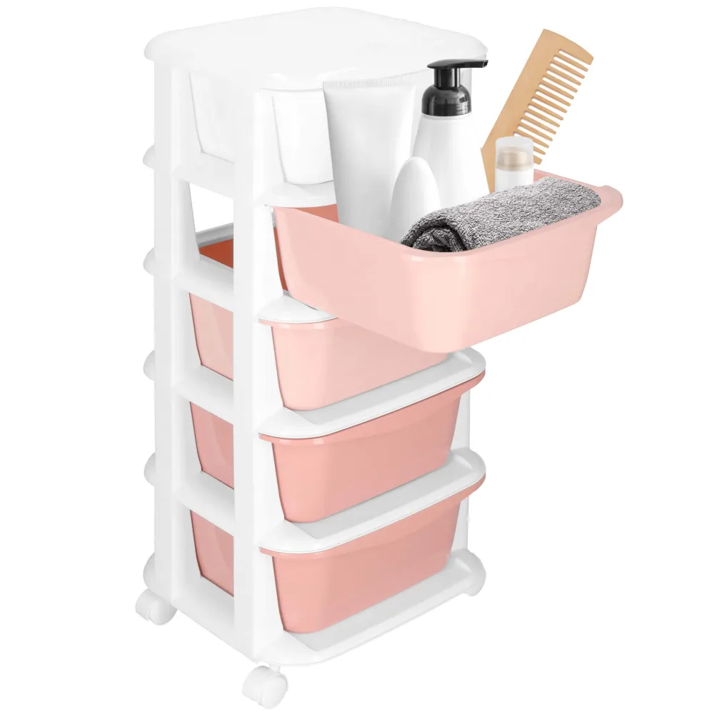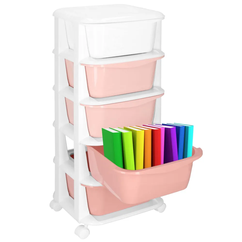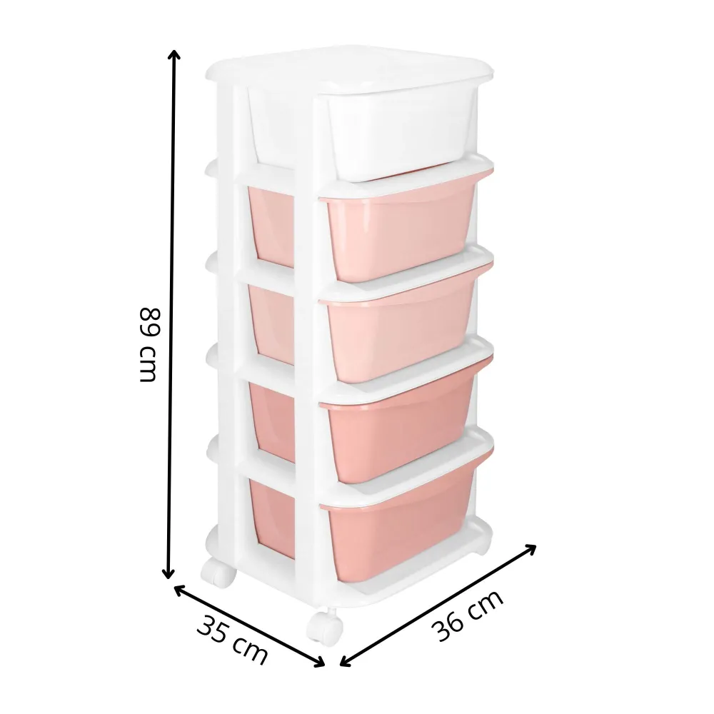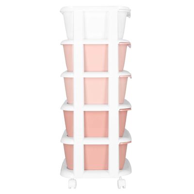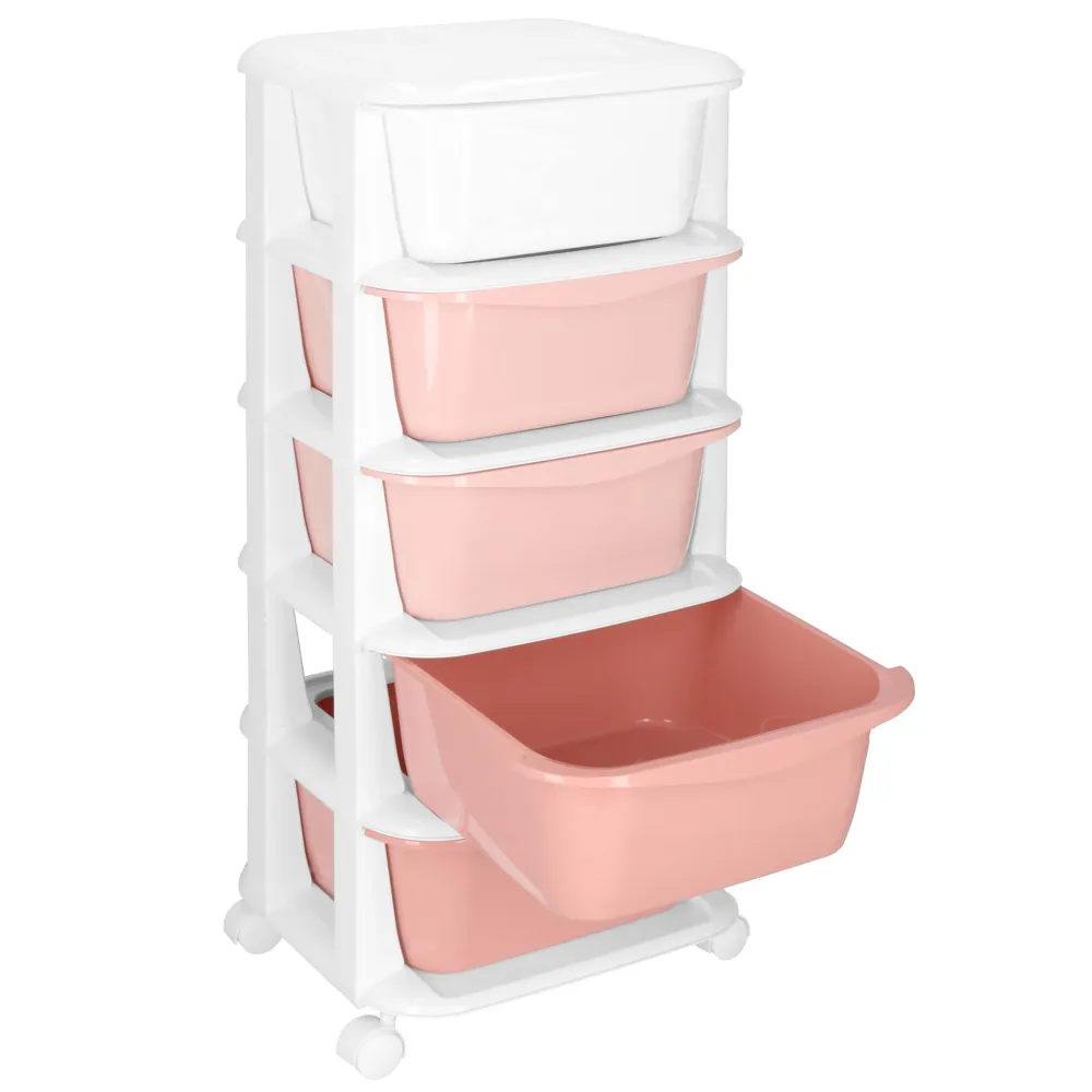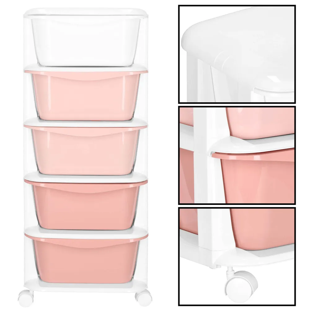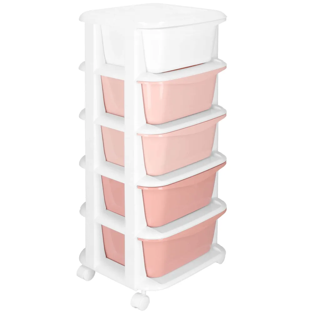 Skrinka na kolieskach 5 zásuviek SPRINGOS HA0211 je praktické riešenie na ukladanie hračiek, kancelárskych potrieb alebo domácich drobností. Vďaka piatim zásuvkám ponúka dostatok priestoru a ľahká plastová konštrukcia sa ľahko udržuje. Bezpečnú prevádzku zaisťujú zaoblené hrany a celková nosnosť až 25 kg , ktorá umožňuje pohodlne ukladať rôzne predmety.