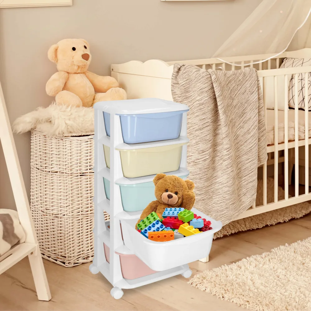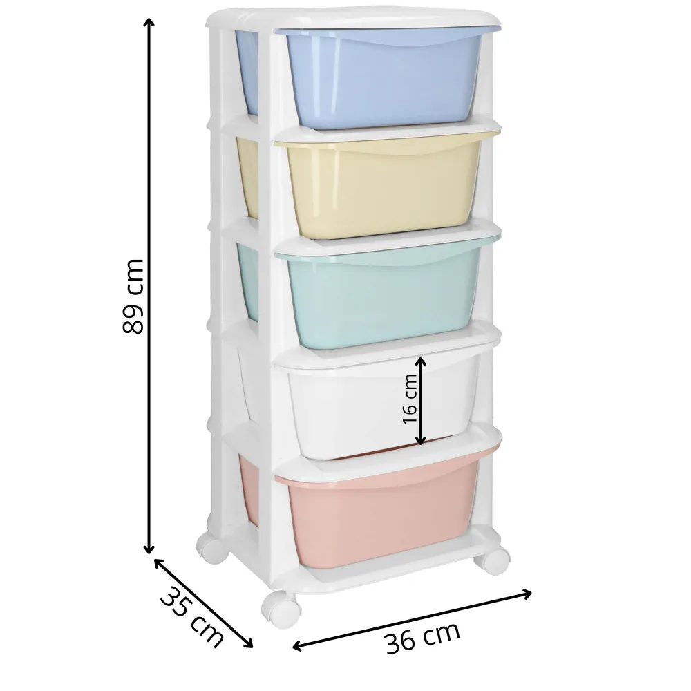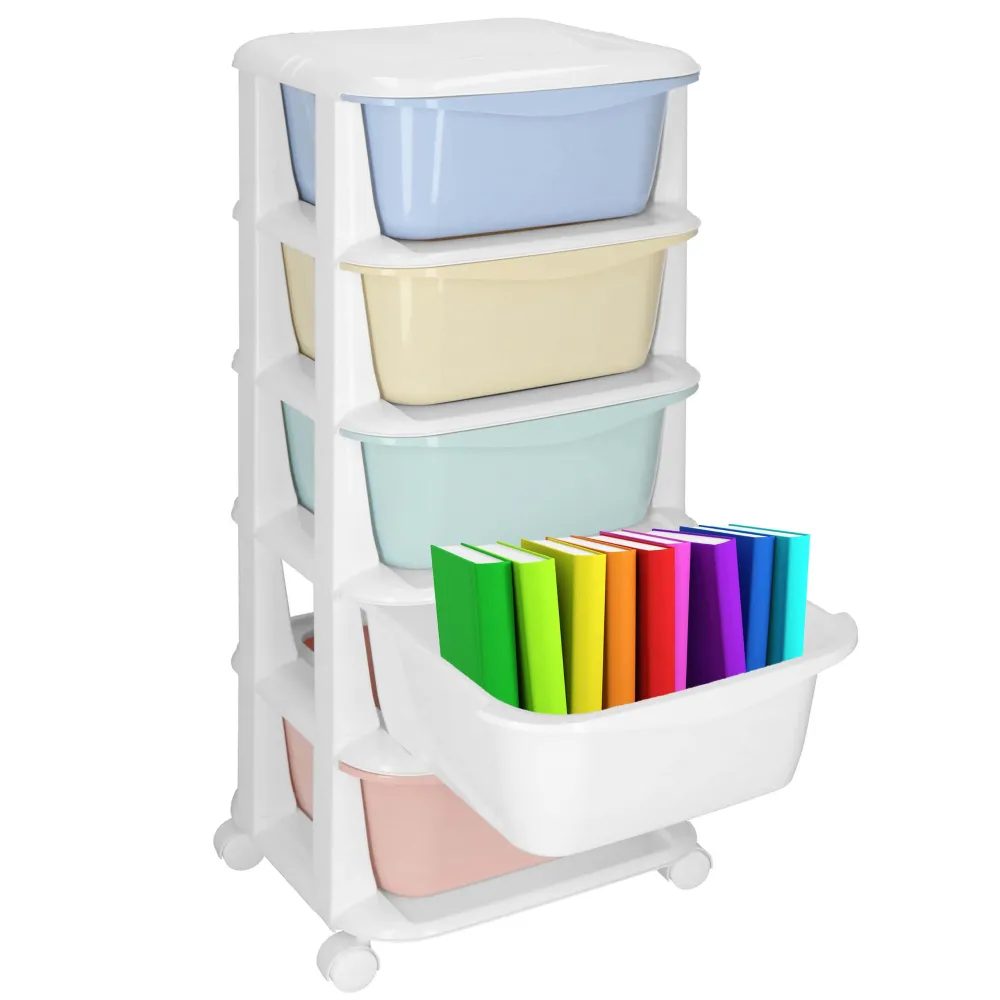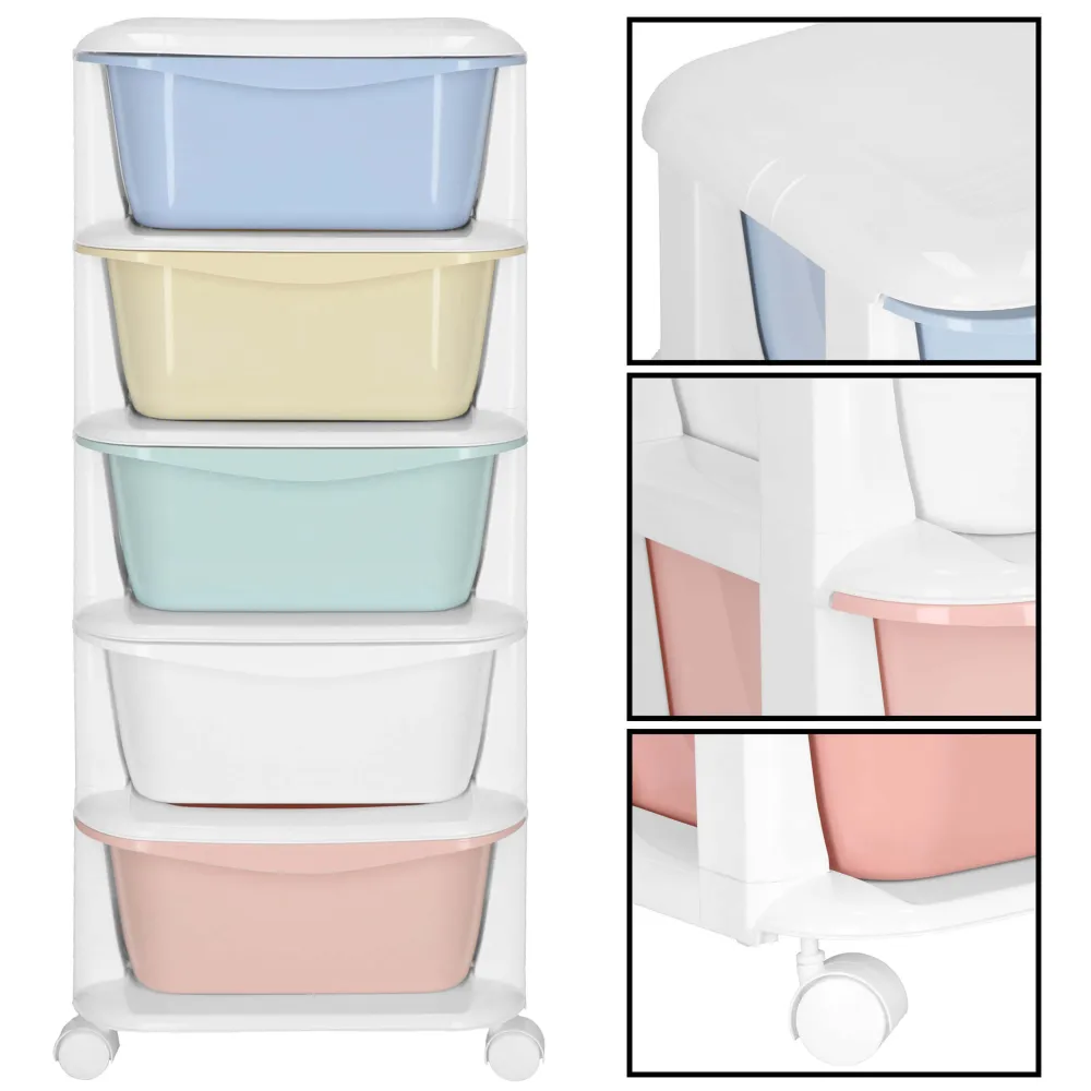 Skrinka na kolieskach 5 zásuviek SPRINGOS HA0213 je praktický pomocník pre domácnosť, kanceláriu alebo detskú izbu. Ponúka päť priestranných zásuviek, ktoré umožňujú prehľadné triedenie a ukladanie rôznych predmetov. Plastová konštrukcia je ľahká, ľahko sa čistí a jej zaoblené hrany zaisťujú bezpečné používanie aj v prostredí s deťmi. Celková nosnosť 25 kg poskytuje spoľahlivý úložný priestor na každodenné použitie.