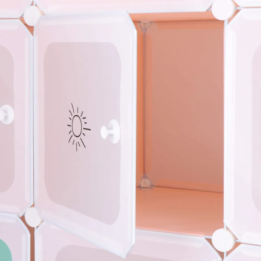 Detská modulárna skriňa s 9 úložnými boxmi je ideálnym riešením pre prehľadné a hravé usporiadanie vecí v detskej izbe. Farebné dvierka s rozprávkovými motívmi dodajú priestoru radostnú atmosféru a motivujú deti k udržovaniu poriadku. Vďaka modulárnemu systému je možné skriňu prispôsobiť aktuálnym potrebám, meniť rozloženie políc alebo tvar celej zostavy. Stabilná plastová konštrukcia je navrhnutá tak, aby odolala každodennému používaniu.