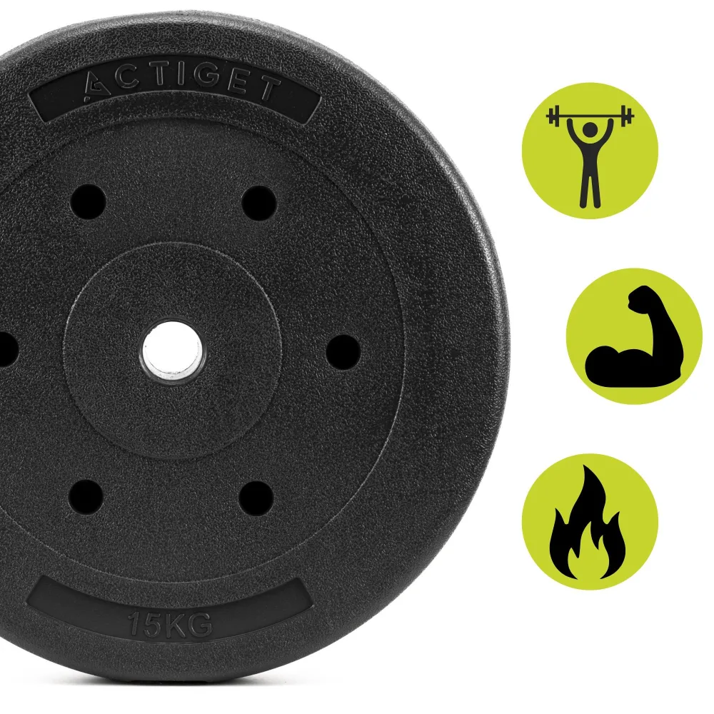 Kompozitný kotúč na činky 15 kg ACTIGET ACT0068 je vyrobený z kompozitného materiálu , ktorý vyniká vysokou odolnosťou proti nárazom a opotrebovaniu. Vďaka tvrdenému PP plášťu a vnútornej cementovej výplni si kotúč dlhodobo zachováva tvar aj hmotnosť. Je ideálny pre domáce posilňovne aj fitness centrá, kde je kladený dôraz na spoľahlivosť a dlhú životnosť vybavenia.