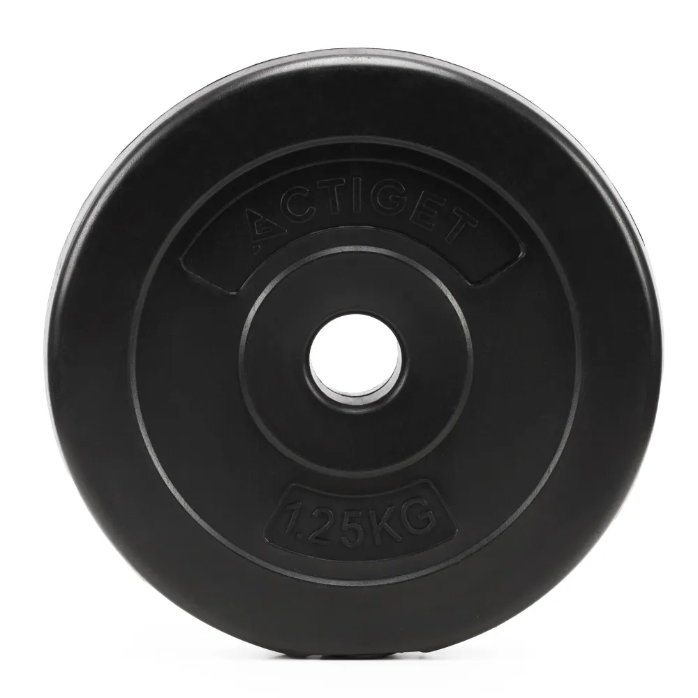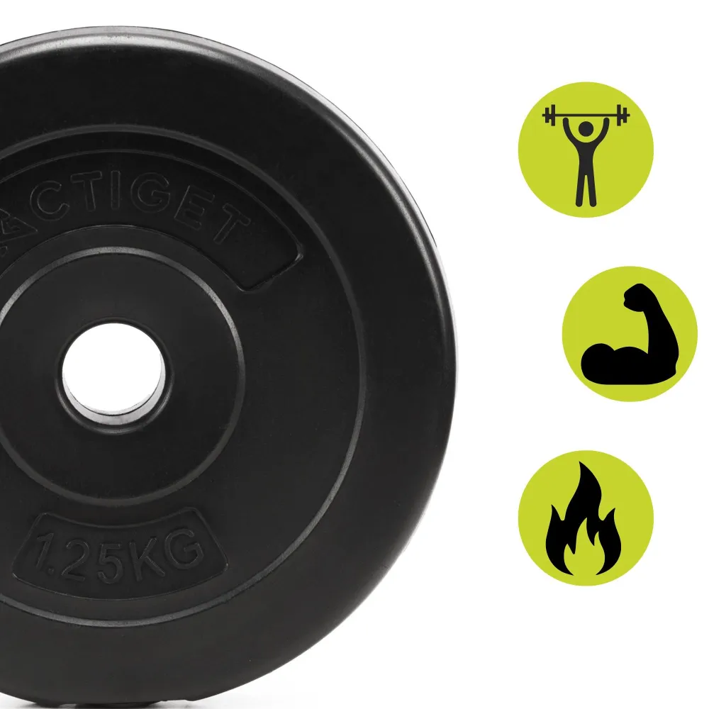 Kompozitný kotúč na činky pre silový tréning. Kompozitný materiál pre vysokú odolnosť. Tvrdený PP plášť s cementovou výplňou pre pevnosť a stabilitu. Hmotnosť 1,25 kg umožňuje ľahké navyšovanie záťaže a prispôsobenie tréningu podľa úrovne cvičenca. Vhodný pre domáce aj klubové cvičenia. Perfektný pre tyče priemeru 30 mm.