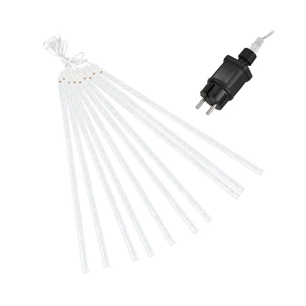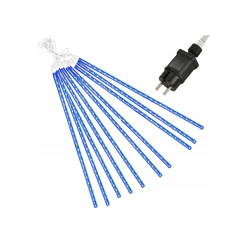 Svetelná reťaz s 10 cencúľmi a pôsobivým efektom padajúceho snehu. Adaptér na bezpečné napätie, ultra úsporné ľad diódy, transparentný kábel. Vnútorné aj vonkajšie použitie, vodeodolné prevedenie, krytie IP44. Dĺžka svetelnej časti 4 m, napájací kábel 2 m. Farba modrá, 480 ľad, výška rampuchov 50 cm.