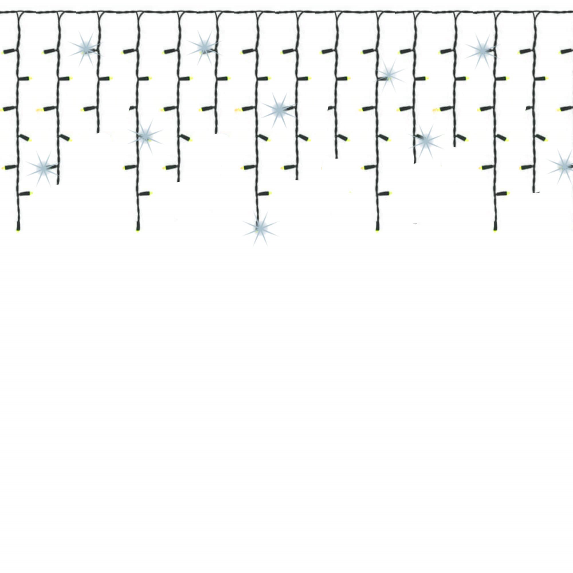 Svetelná reťaz so zábleskami a rôznou výškou voľne visiacich kvapľov. Úsporné ľad diódy, vnútorné aj vonkajšie použitie, vodeodolné prevedenie, krytie IP44. Dĺžka svetelnej časti 20 m, napájací kábel 2,5 m. Farba teplá biela + záblesky studená biela, 500 ľad.
