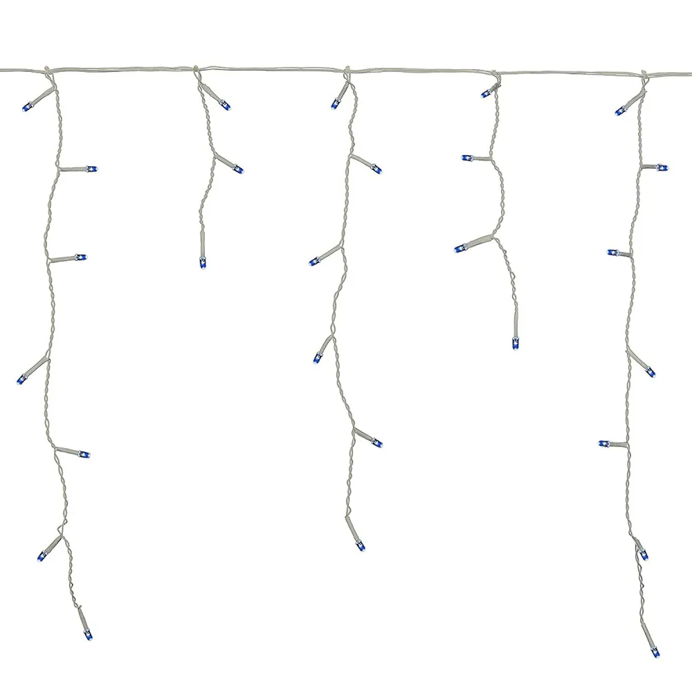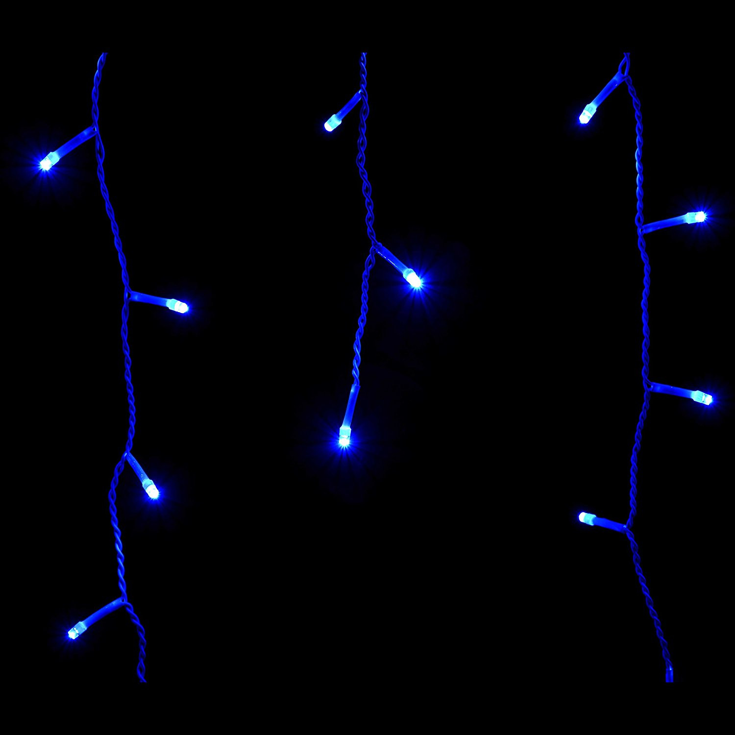 Svetelná reťaz s rôznou výškou voľne visiacich kvapľov. Programátor, 8 svetelných funkcií, diaľkový ovládač, adaptér na bezpečné napätie. Ultra úsporné ľad diódy, vnútorné aj vonkajšie použitie, vodeodolné prevedenie, krytie IP44. Dĺžka svetelnej časti 12 m, napájací kábel 2,5 m. Farba modrá, 300 ľad.