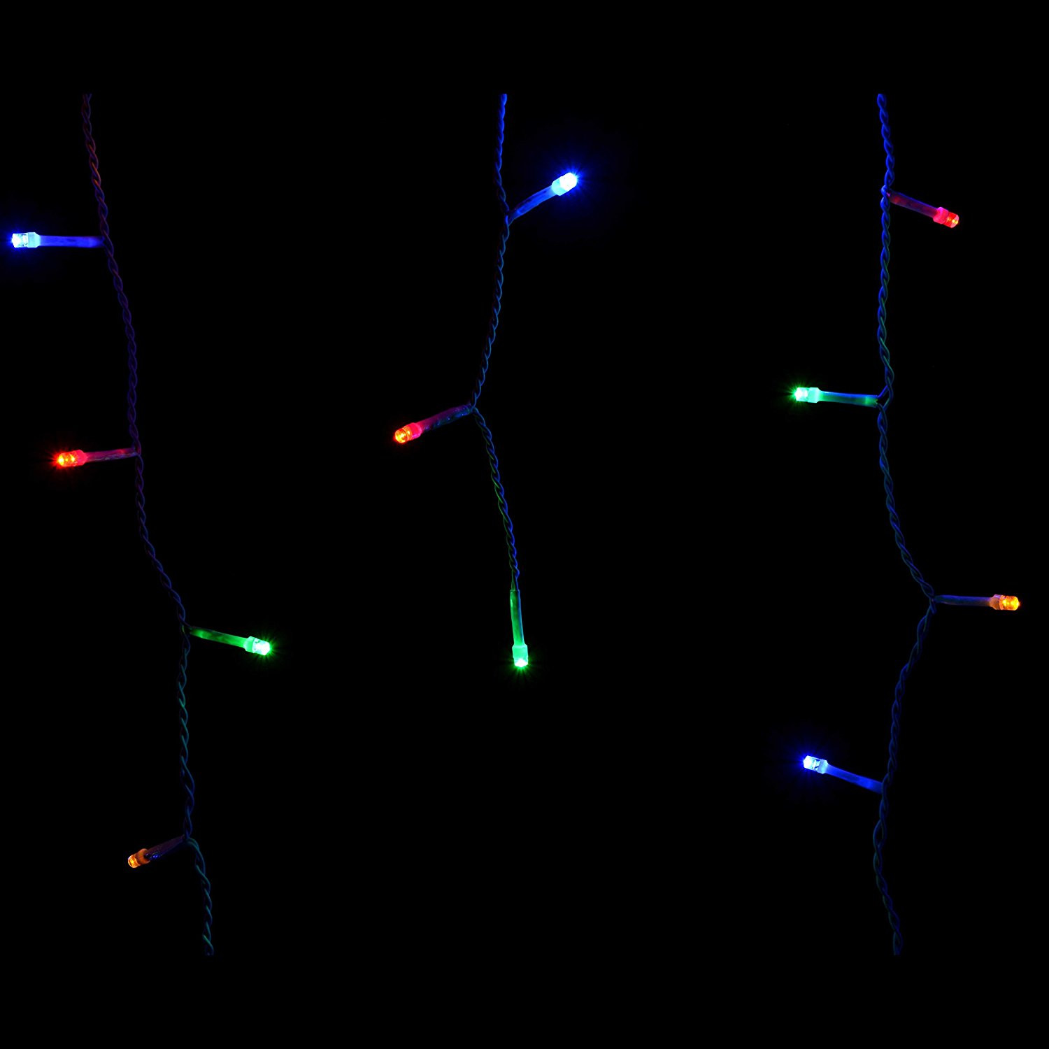 Svetelná reťaz s rôznou výškou voľne visiacich kvapľov. Programátor, 8 svetelných funkcií, diaľkový ovládač, adaptér na bezpečné napätie. Ultra úsporné ľad diódy, vnútorné aj vonkajšie použitie, vodeodolné prevedenie, krytie IP44. Dĺžka svetelnej časti 12 m, napájací kábel 2,5 m. Farba multicolor, 300 ľad.