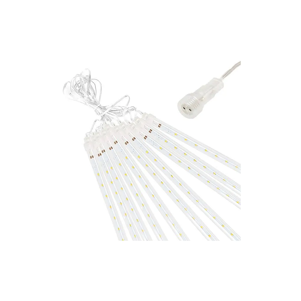 Svetelná reťaz s 8 cencúľmi a pôsobivým efektom padajúceho snehu. Adaptér na bezpečné napätie, ultra úsporné led diódy, transparentný kábel. Vnútorné aj vonkajšie použitie, vodeodolné prevedenie, krytie IP44. Dĺžka svetelnej časti 4 m, napájací kábel 2 m. Farba teplá biela, 480 ľad, výška rampuchov 50 cm.