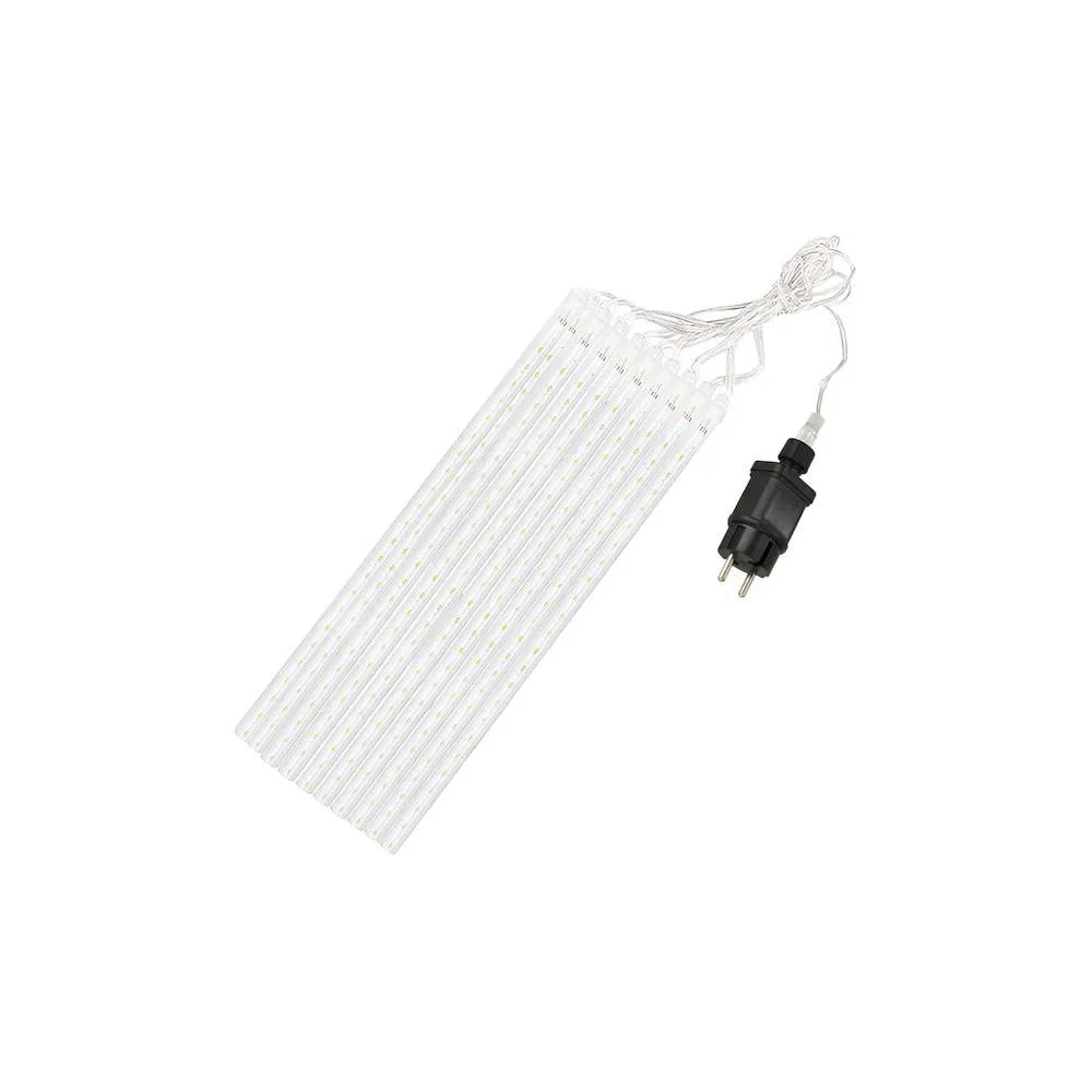Svetelná reťaz s 8 cencúľmi a pôsobivým efektom padajúceho snehu. Adaptér na bezpečné napätie, ultra úsporné ľad diódy, transparentný kábel. Vnútorné aj vonkajšie použitie, vodeodolné prevedenie, krytie IP44. Dĺžka svetelnej časti 4 m, napájací kábel 2 m. Farba teplá biela, 480 ľad, výška rampuchov 50 cm.