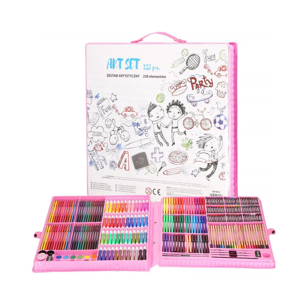 Kreatívna výtvarná sada, v ktorej nájdete všetky potrebné pomôcky na maľovanie a kreslenie pekne pohromade, je nielen dokonalým vybavením každého mladého umelca, ale aj skvelým tipom na darček alebo setom do školy. Súprava sa skladá z celkom 258 praktických pomôcok. Kvalitný materiál, všetko v elegantnom a praktickom kufríku.