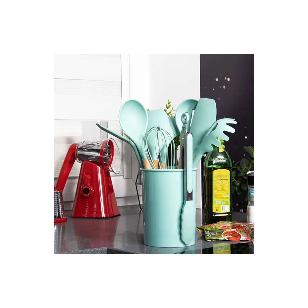 Sada kuchynského náčinia v stojane, set 12ks, tyrkysová SPRINGOS CHEF