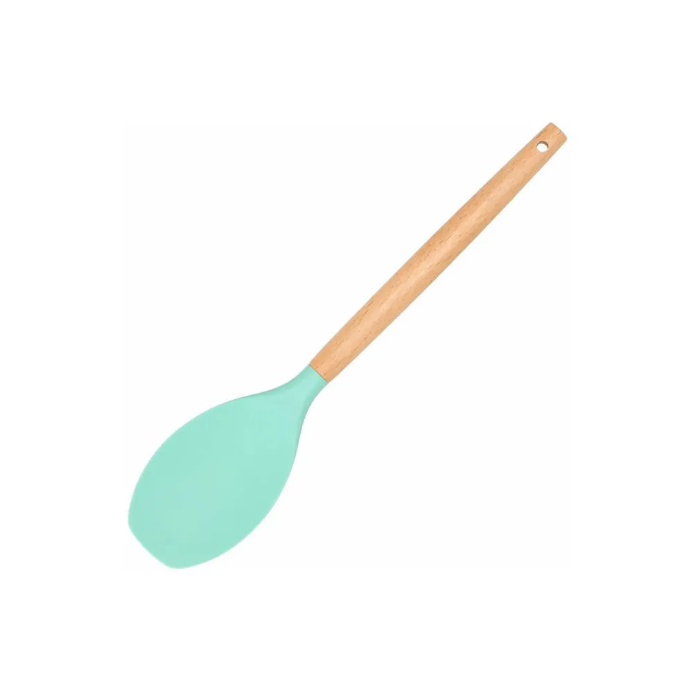 Silikónové náčinie s bambusovými rukoväťami je mimoriadne funkčné vybavenie do každej kuchyne. Odoláva vysokým aj nízkym teplotám, nepoškábe riad, má nepriľnavý povrch a ľahko sa udržuje. Bambusové rukoväte skvele padnú do ruky a hlavne sa nezahrievajú .