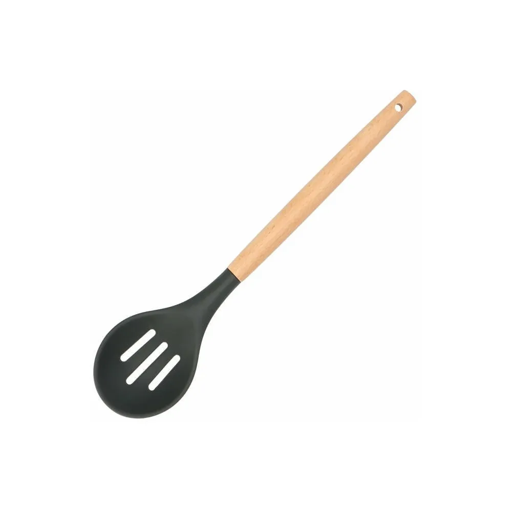 Silikónové náčinie s bambusovými rukoväťami je mimoriadne funkčné vybavenie do každej kuchyne. Odoláva vysokým aj nízkym teplotám, nepoškábe riad, má nepriľnavý povrch a ľahko sa udržuje. Bambusové rukoväte skvele padnú do ruky a hlavne sa nezahrievajú .