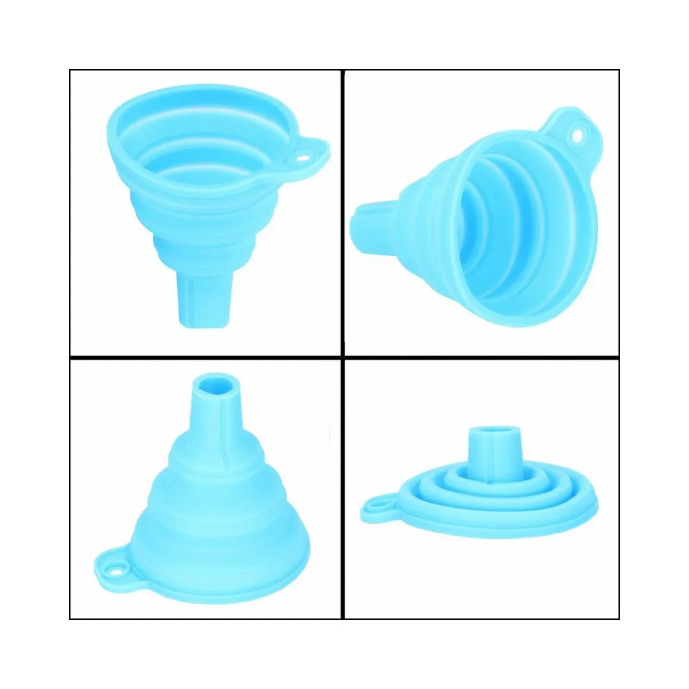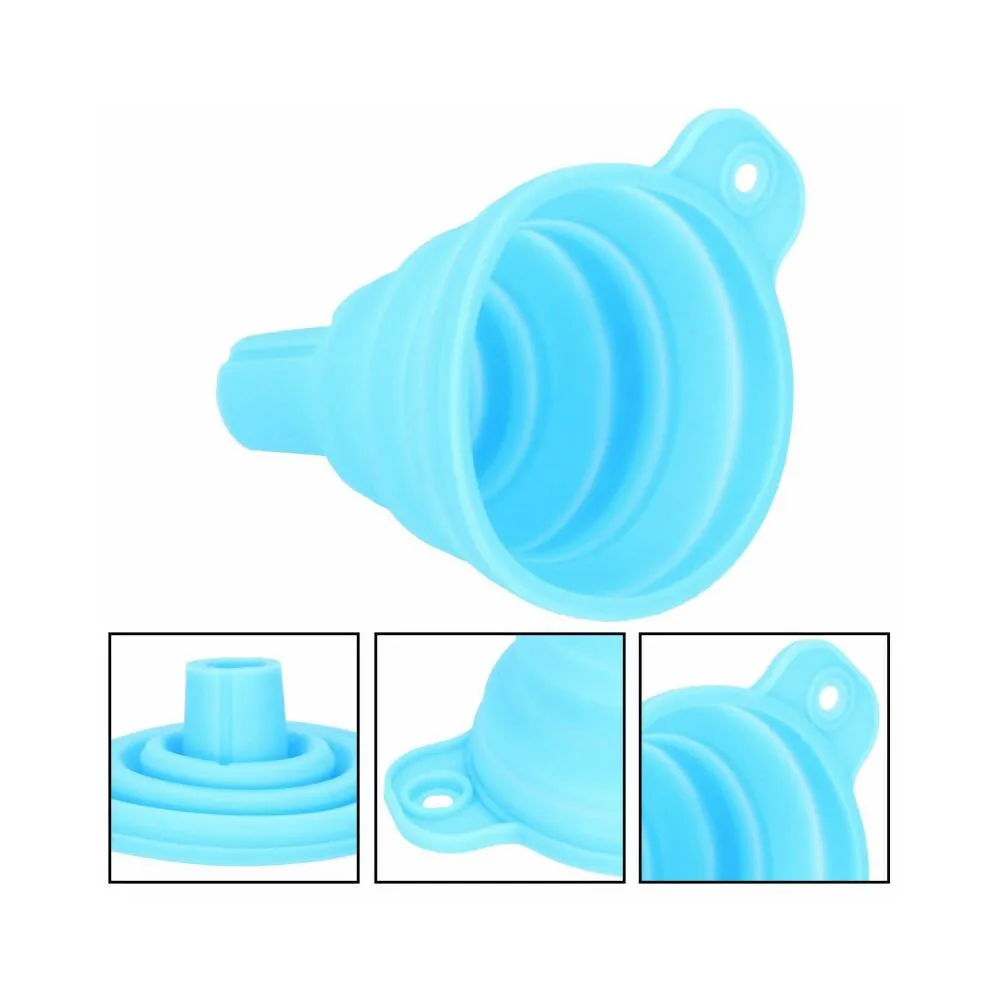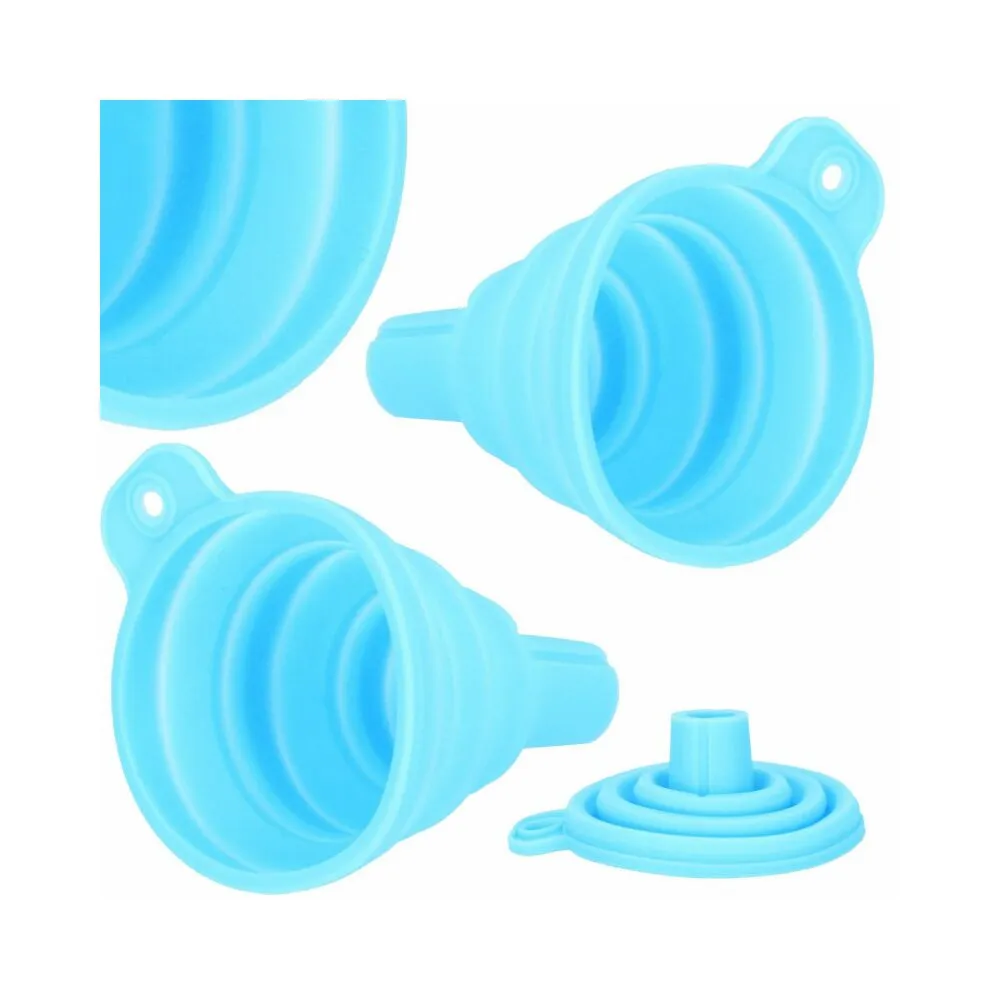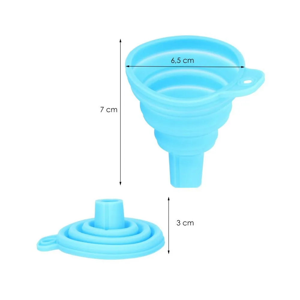 Skladací lievik zo silikónu . Vďaka tomu je zaistené oveľa lepšie skladovanie, neabsorbuje pachy a tekutiny a ľahšie sa čistí. Odolný voči deformáciám spôsobeným vyššou teplotou. Dá sa zavesiť na háčik. Certifikovaný výrobok, dlhá životnosť. Použitie v kuchyni aj v garáži.