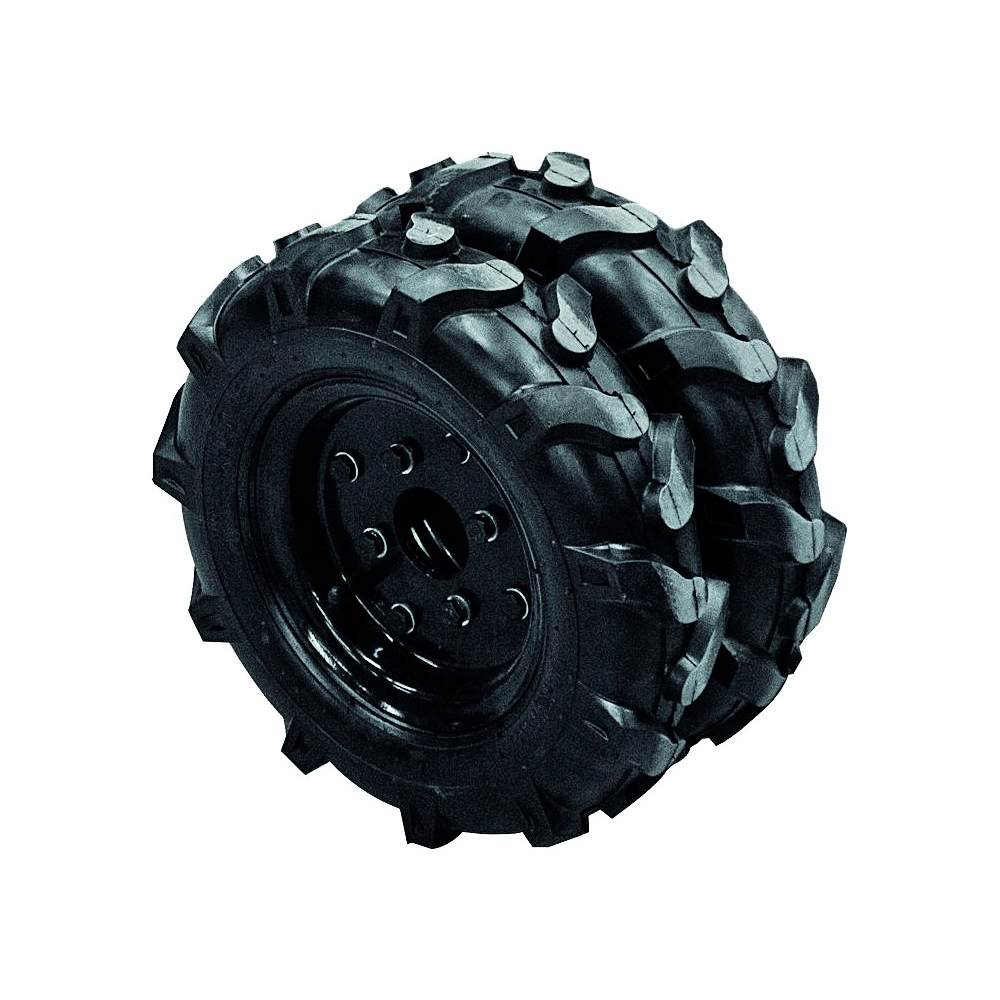 Gumové dušové kolesá so šípovým dezénom na použitie s kultivátorom GF 1350 (obj. číslo: 5507). Dodávané v páre bez osiek a bez skrutiek. Kolesá sa pripevňujú namiesto kolies, ktoré sú dodávané štandardne s kultivátorom GF 1350 (obj. číslo: 5507).