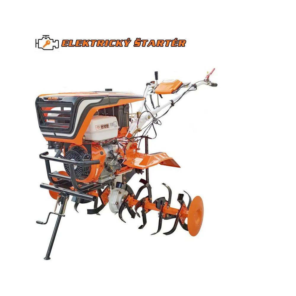 Vrátane príslušenstva: nafukovacie kolesá s osami 600x12, orebné kovové kolesá 500 s osami, obracací pluh s nastavovacím telesom REV2, pluh na brzdu kultivátora, sada závaží na kolesá 20 kg.