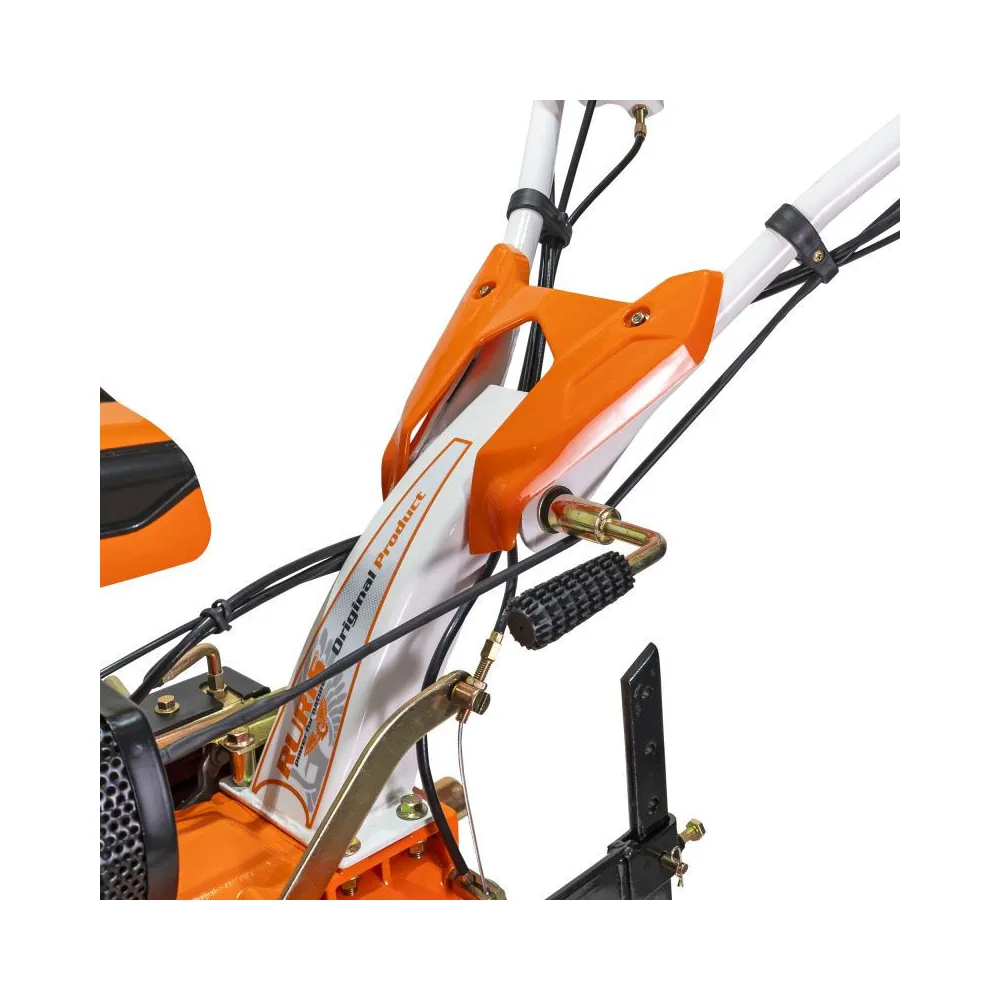 RURIS 651KSD je vybavený kužeľovými prevodmi v olejovom kúpeli . Ľahko sa s ním manipuluje vďaka 3 rýchlostiam pojazdu (2 vpred + 1 vzad), ale aj výškovo nastaviteľné rukoväte . Vďaka telesu z tvárnej liatiny, odolnému voči nárazom a mechanickému opotrebovaniu, získava RURIS 651KSD extra váhu , čo mu umožňuje preniknúť viac do pôdy a mať zvýšenú stabilitu pri kopaní. Kultivátor RURIS 651KSD má maximálnu pracovnú šírku 1000 mm a hĺbku 100 – 200 mm , čo predstavuje spoľahlivého spojenca pre tých, ktorí chcú jednoducho a efektívne obrábať zem.