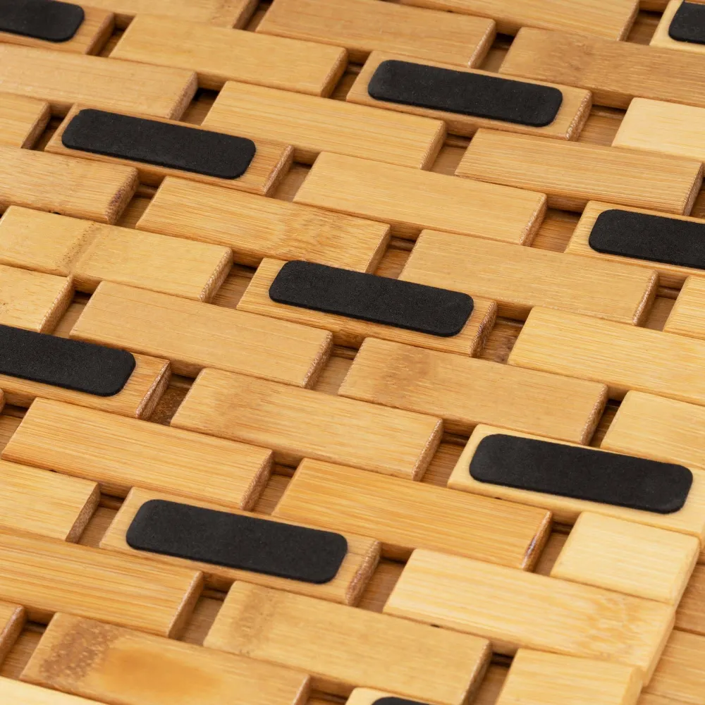 Štýlový doplnok do kúpeľne, ktorý spája prírodný vzhľad s praktickým využitím. Povrch z bambusových lamiel pôsobí elegantne a príjemne na dotyk, zároveň umožňuje rýchle odtekanie vody. Protišmykové prvky zaisťujú stabilitu na podlahe a bezpečný krok po sprchovaní. Jednoduchá údržba a nadčasový dizajn z neho robia ideálnu voľbu pre moderné aj prírodné interiéry.