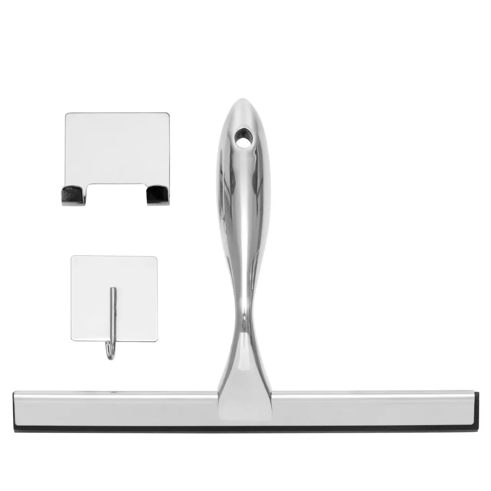 Praktická kúpeľňová stierka vhodná ako stierka do sprchy aj stierka do sprchového kúta. Hladká stieracia hrana zaistí účinné zotretie vody bez šmúh a pomáha obmedziť usadzovanie vodného kameňa. Ergonomická rukoväť umožňuje pohodlný úchop a jednoduchú manipuláciu. Prísavky na uchytenie umožnia praktické zavesenie priamo v kúpeľni, aby bola vždy po ruke. Elegantné nerezové prevedenie doplní moderný interiér. Rozmery 25x18,5 cm.