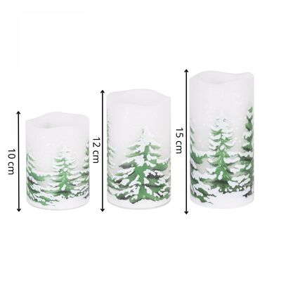LED sviečky so vzorom sada 3 ks 3×AAA SPRINGOS CA1455 prinášajú do interiéru kúzelnú atmosféru vďaka dokonalej replike tradičnej sviečky a realistickému svetlu imitujúcemu skutočný plameň . Každý kus zdobí prekrásny vzor zasneženého lesa , ktorý podčiarkuje zimnú a sviatočnú náladu. Teplá biela farba svetla pôsobí príjemne a útulne, takže sa sviečky skvele hodí na stôl, poličku, parapet či ako doplnok k vianočnej výzdobe.
