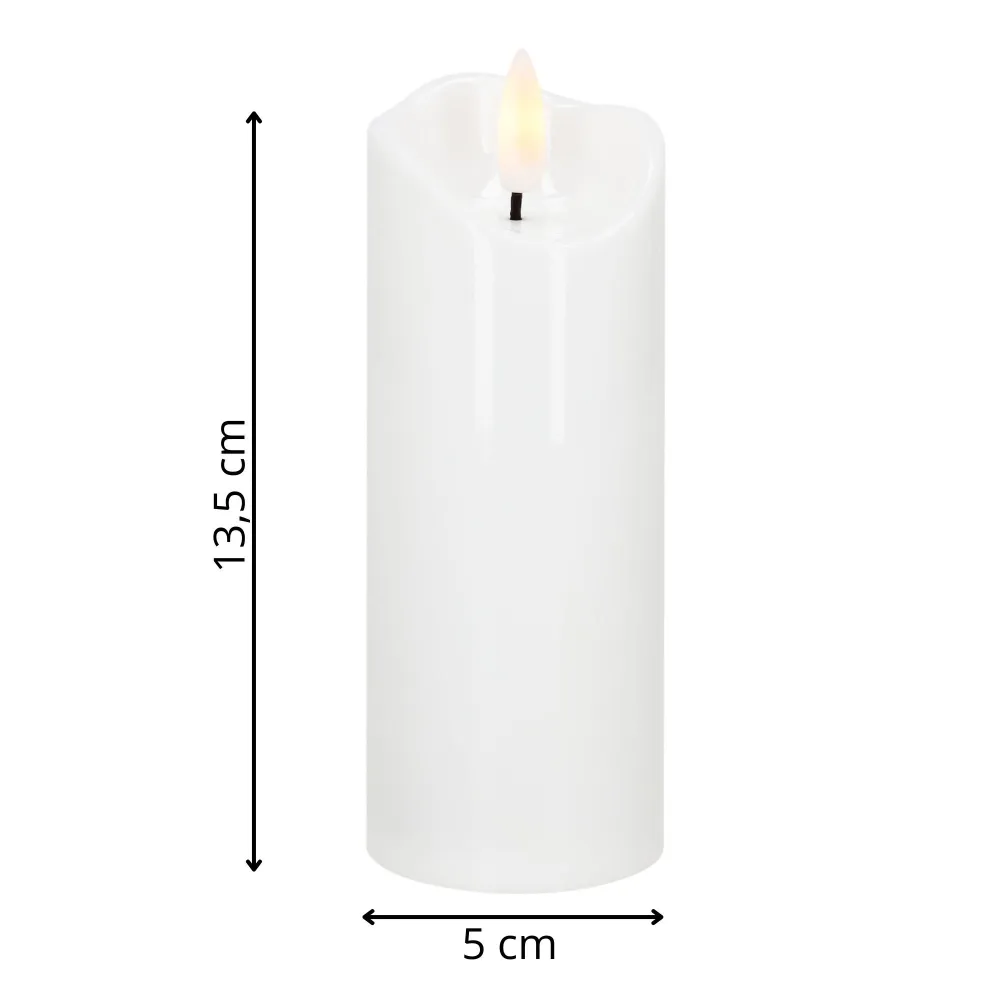 LED sviečka s pohyblivým plameňom 13,5 cm vnesie do vášho domova príjemnú, hrejivú atmosféru. Má teplé žlté svetlo a realistický efekt plameňa . Je vybavená čiernym knôtom , ktorý ešte viac umocňuje dojem skutočnej horiacej sviečky. Tento model je skvelou voľbou pre tých, ktorí chcú kúzlo sviečok bez rizík - nezahrieva sa , nefajčí a je maximálne bezpečná na prevádzku . Vďaka napájaniu na 2× AA batérie ju môžete umiestniť kamkoľvek bez nutnosti zásuvky.