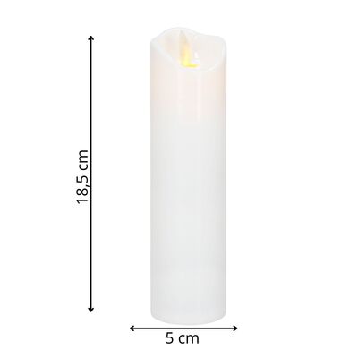 Elegantná LED sviečka s jemným, teplo žltým mihotajúcim svetlom. Dokonale imituje prirodzený plameň. Bezpečná alternatíva bez dymu a zahrievania, na 2× AA baterky. Ideálna ako univerzálna dekorácia do interiéru – na Vianoce, Halloween aj Dušičky ako cintorínska sviečka. Krytie IP 20, dlhá prevádzka. Rozmery: výška 18,5 cm, priemer 5 cm.