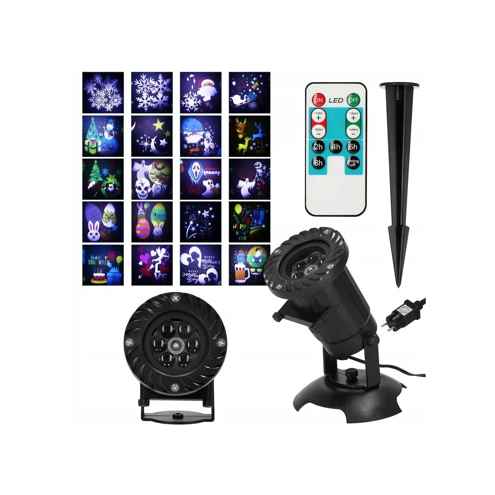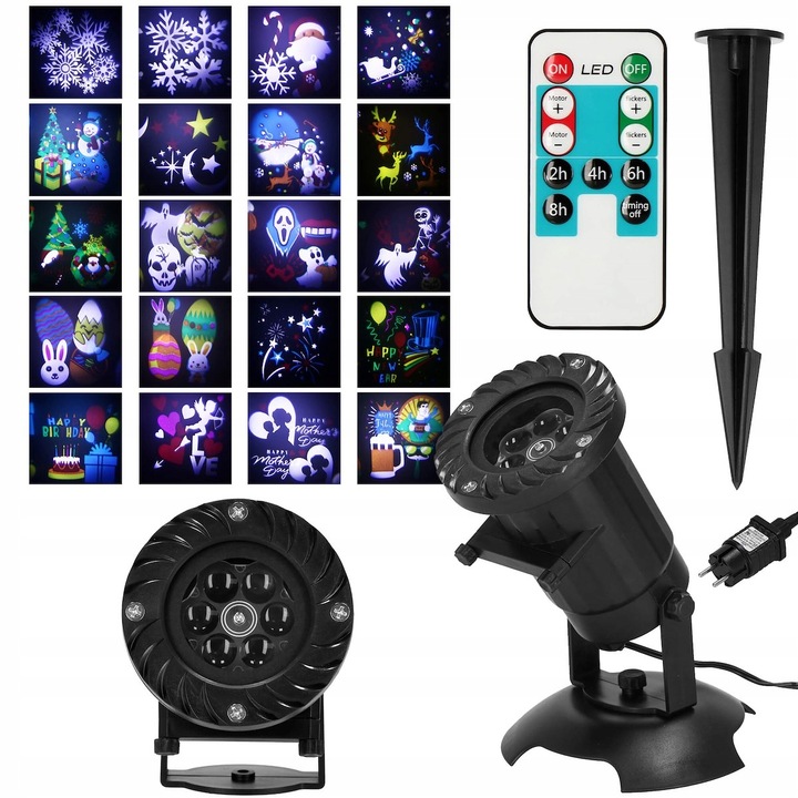 Laserový projektor 20 motívov, ovládač, časovač, IP44