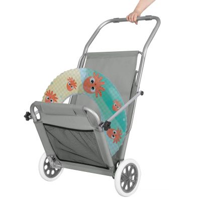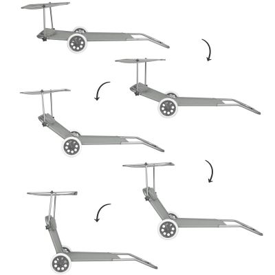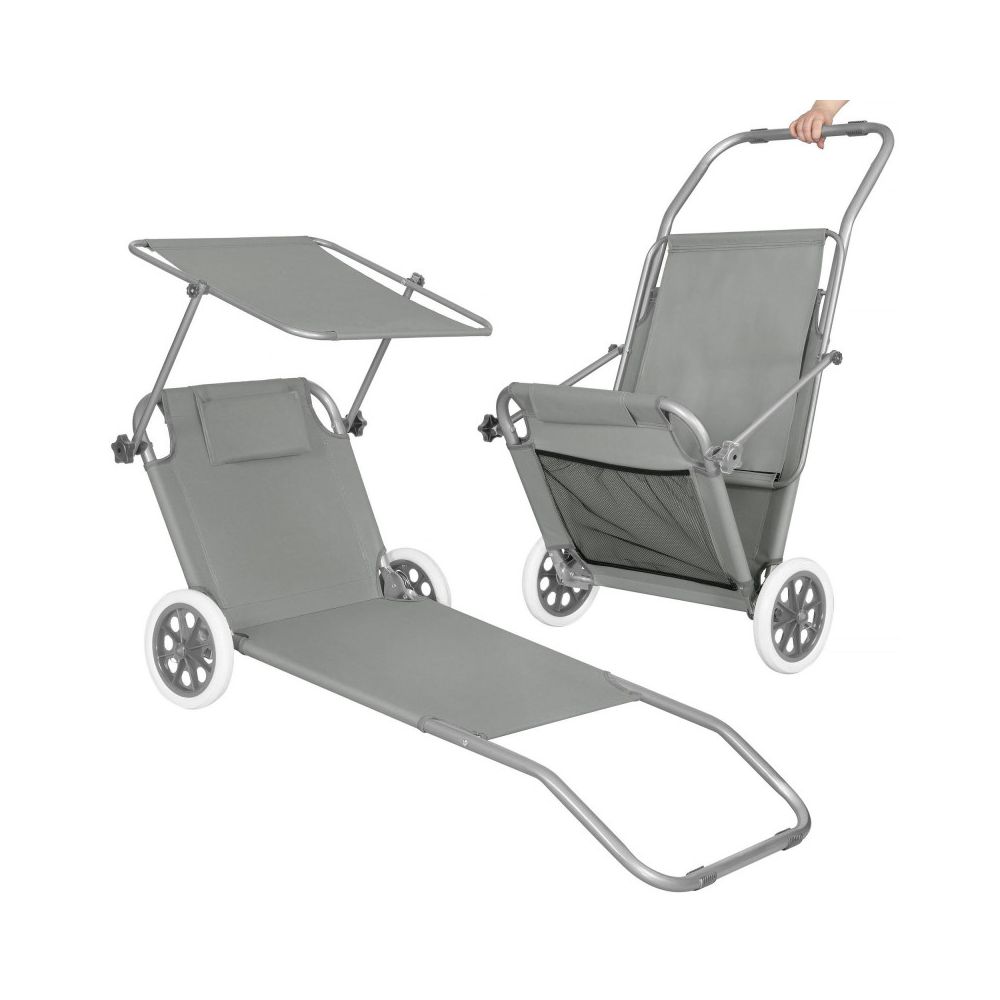 Mobilné plážové lehátko s nastaviteľným sklonom operadla a striešky. Vo výbave nechýbajú komfortné doplnky ako sú pojazdové kolieska, polstrovaný podhlavník, madlo na uchytenie alebo vstavaná sieťovaná taška.