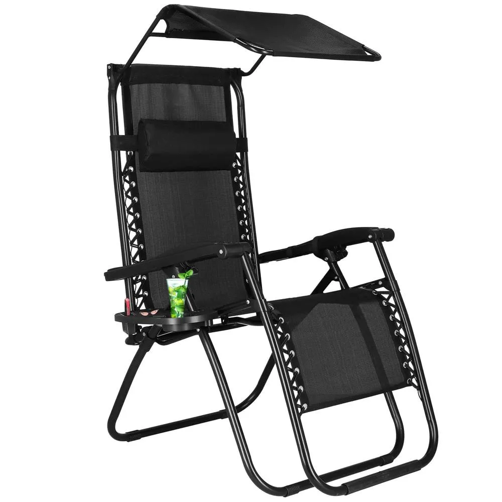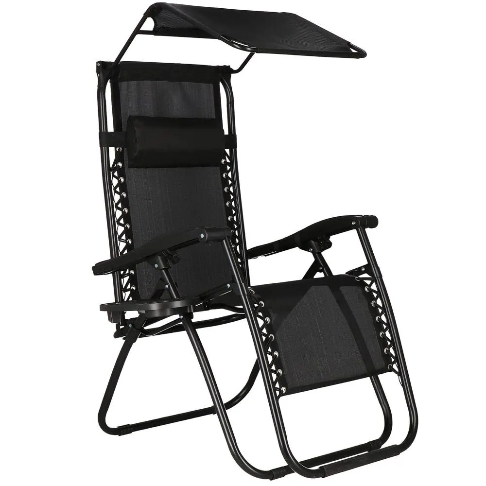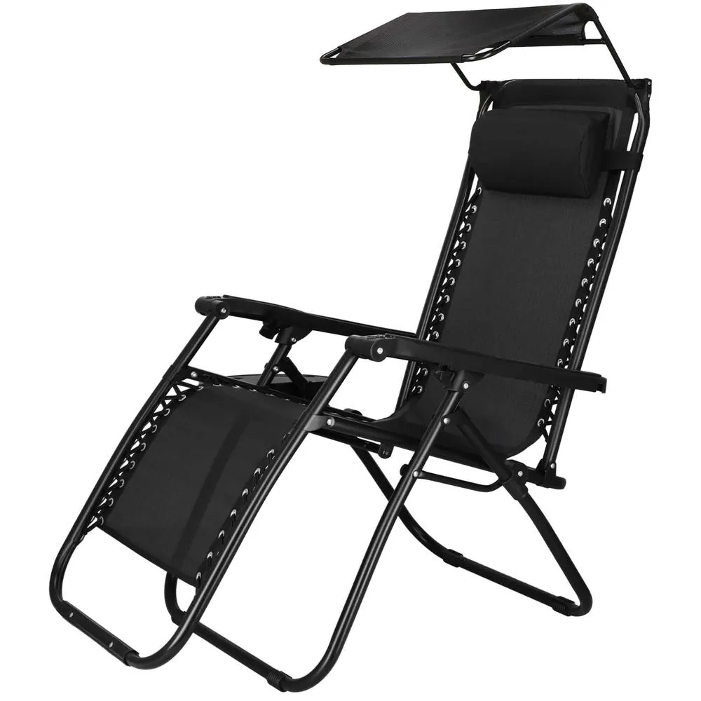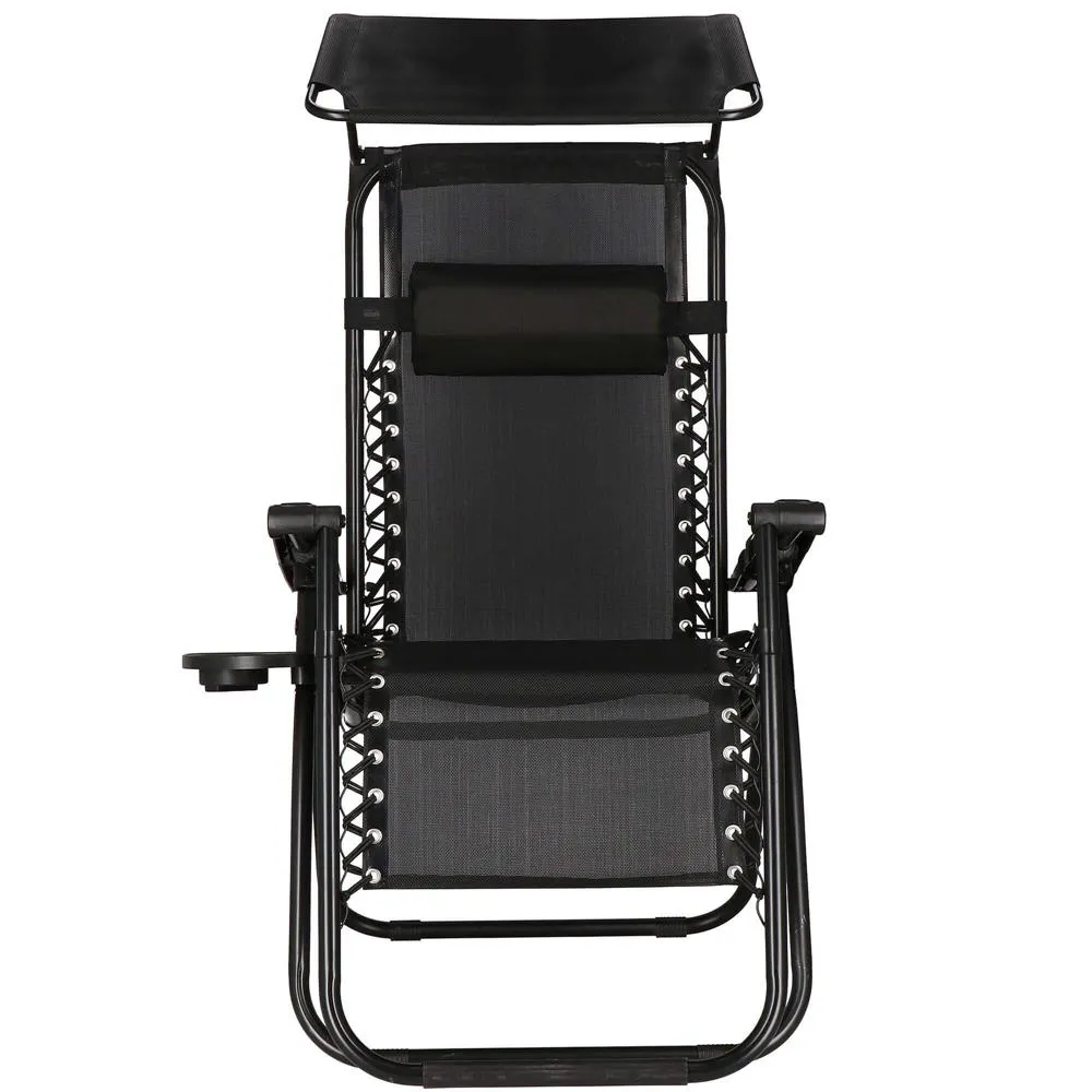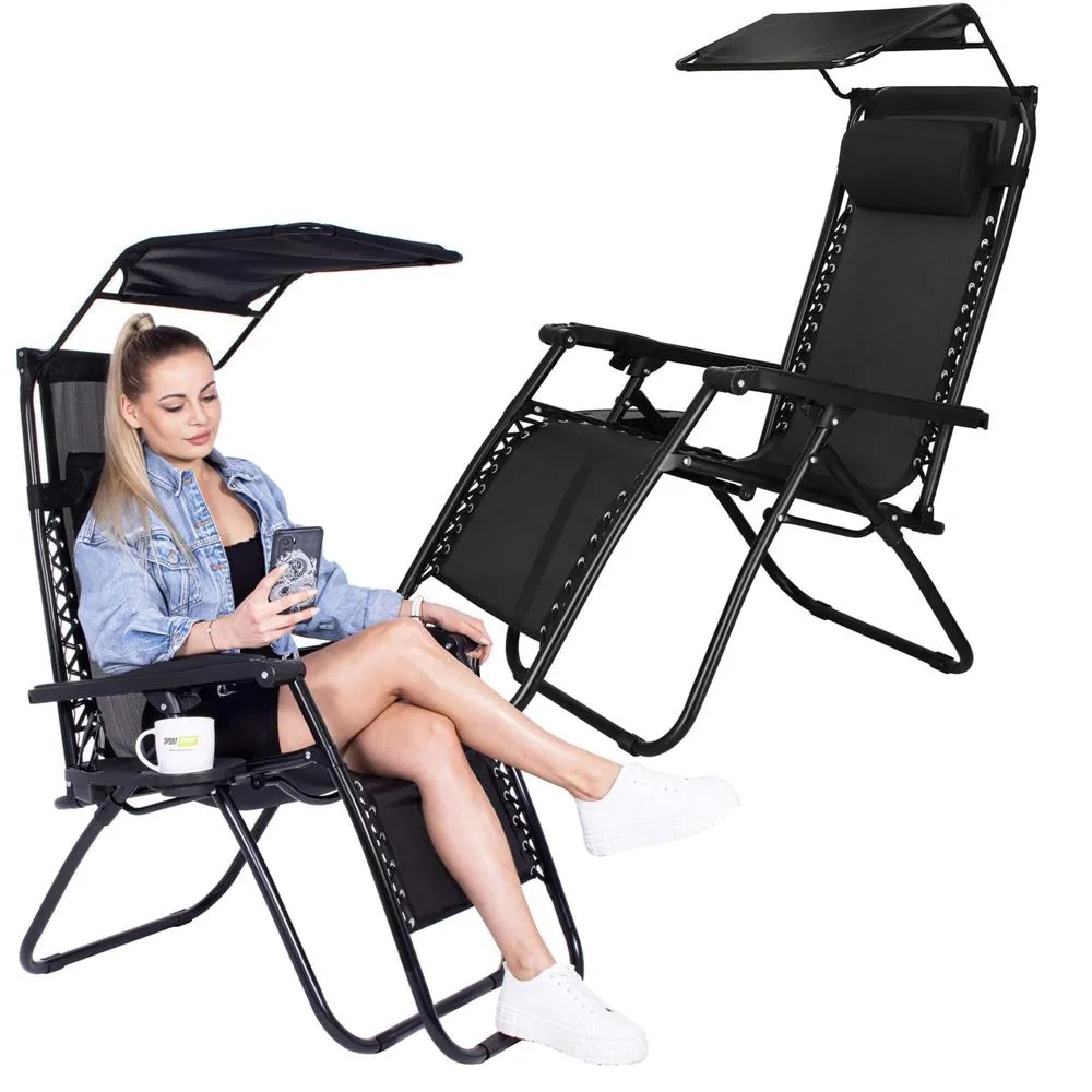 Záhradné polohovacie kreslo so strieškou SPRINGOS ZERO GRAVITY čierne