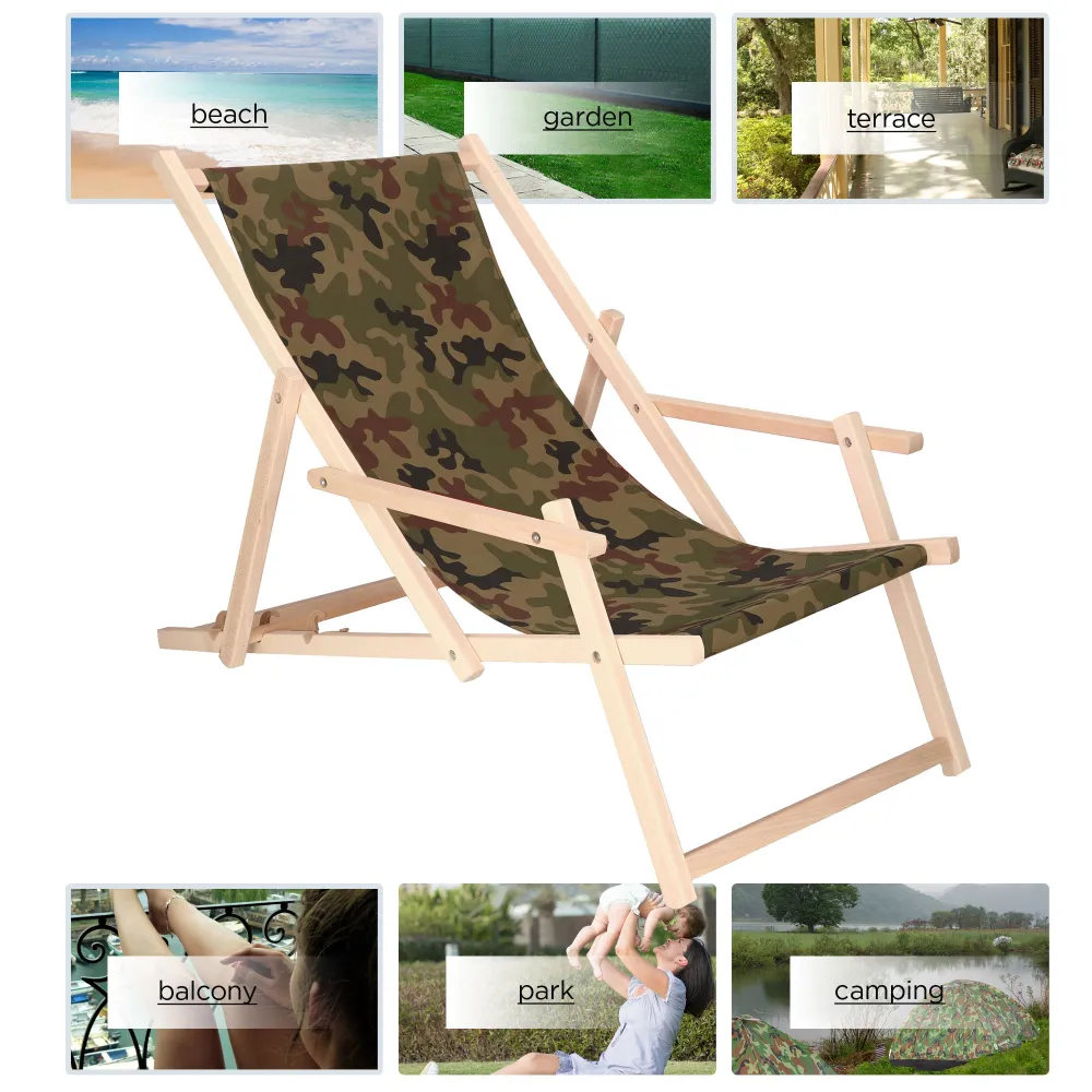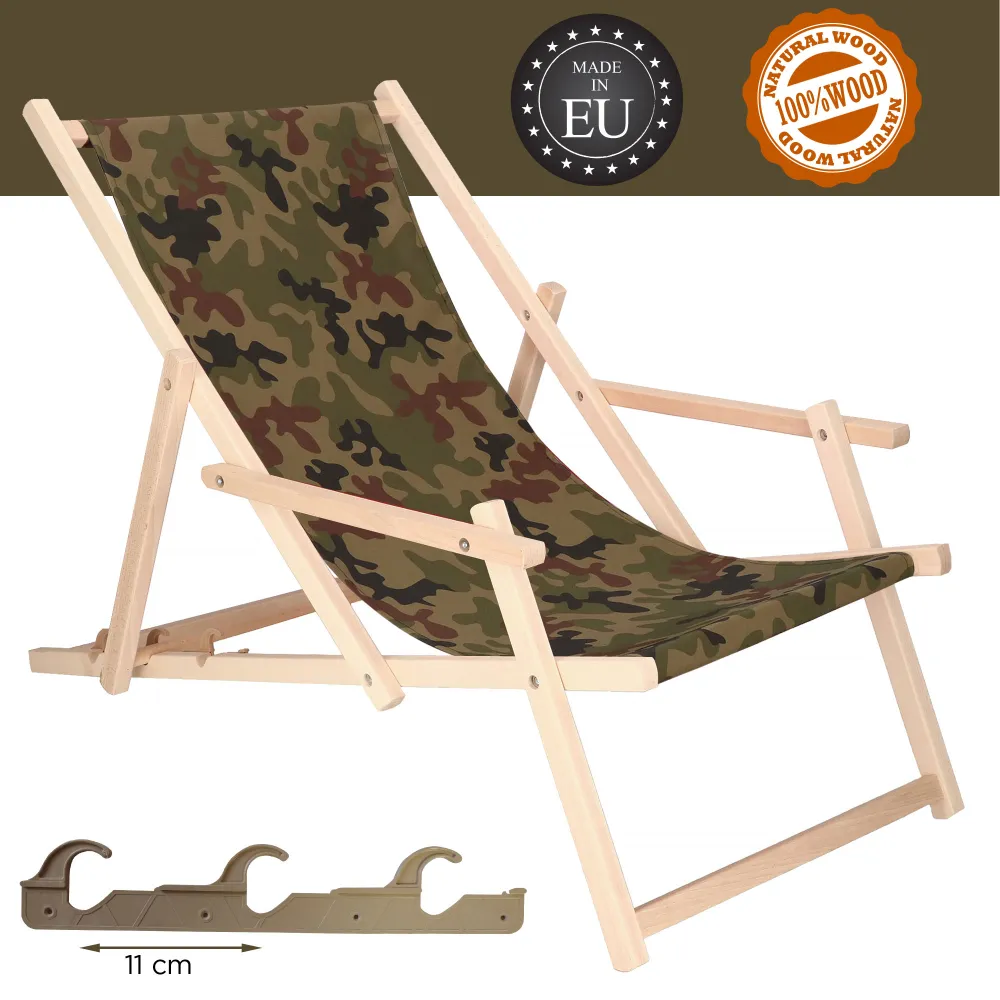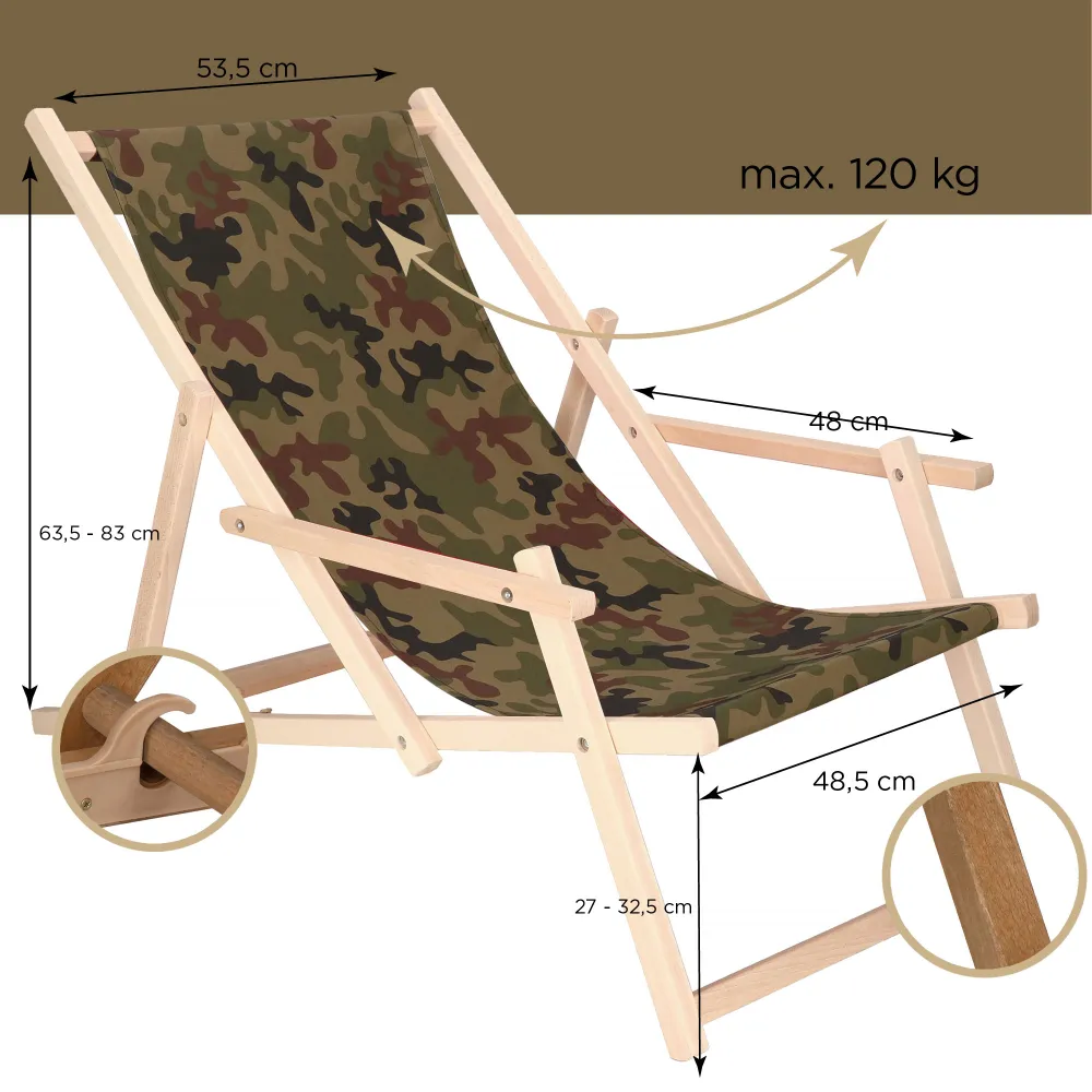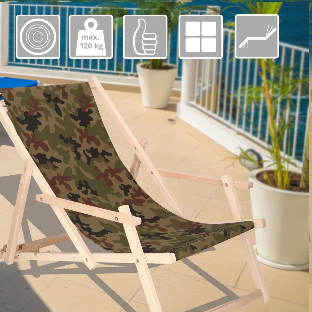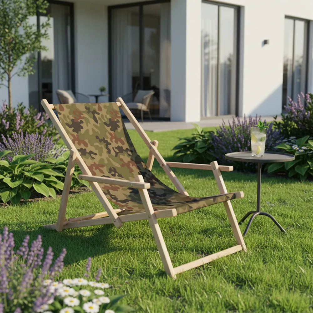 Záhradné drevené lehátko SPRINGOS TORINO camo je ideálne pre relaxáciu na záhrade, terase aj v interiéri . Vďaka 3-stupňovému polohovaniu si ľahko nastavíte ideálnu pozíciu pre odpočinok. Opierky na ruky a pevný poťah zaisťujú maximálne pohodlie pri každom použití.