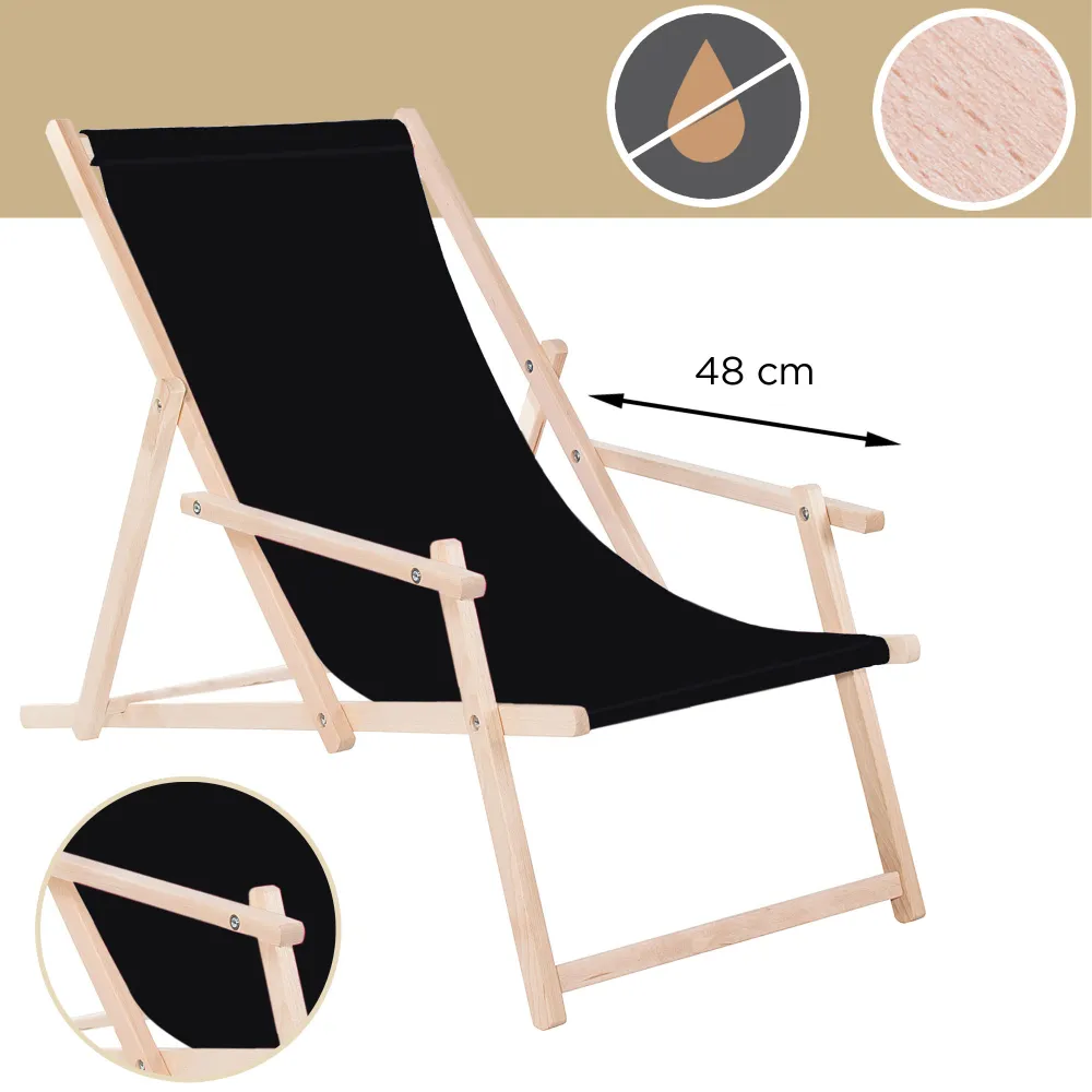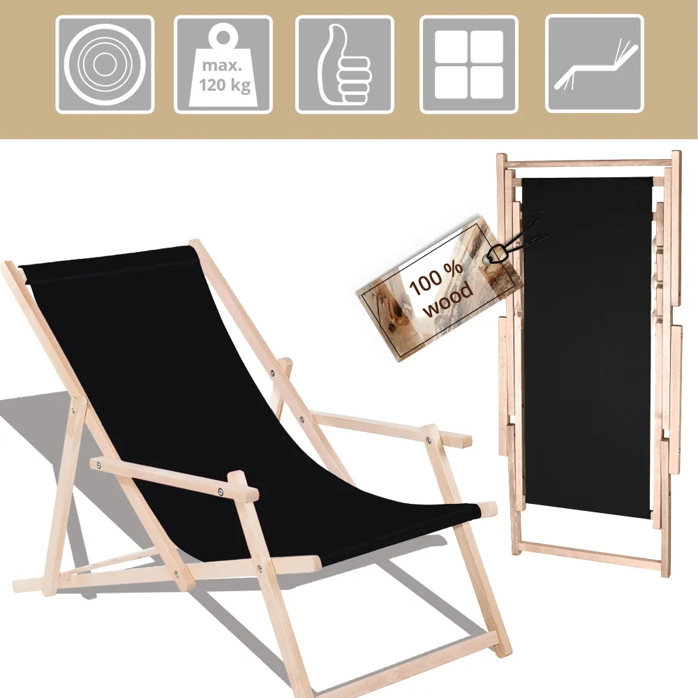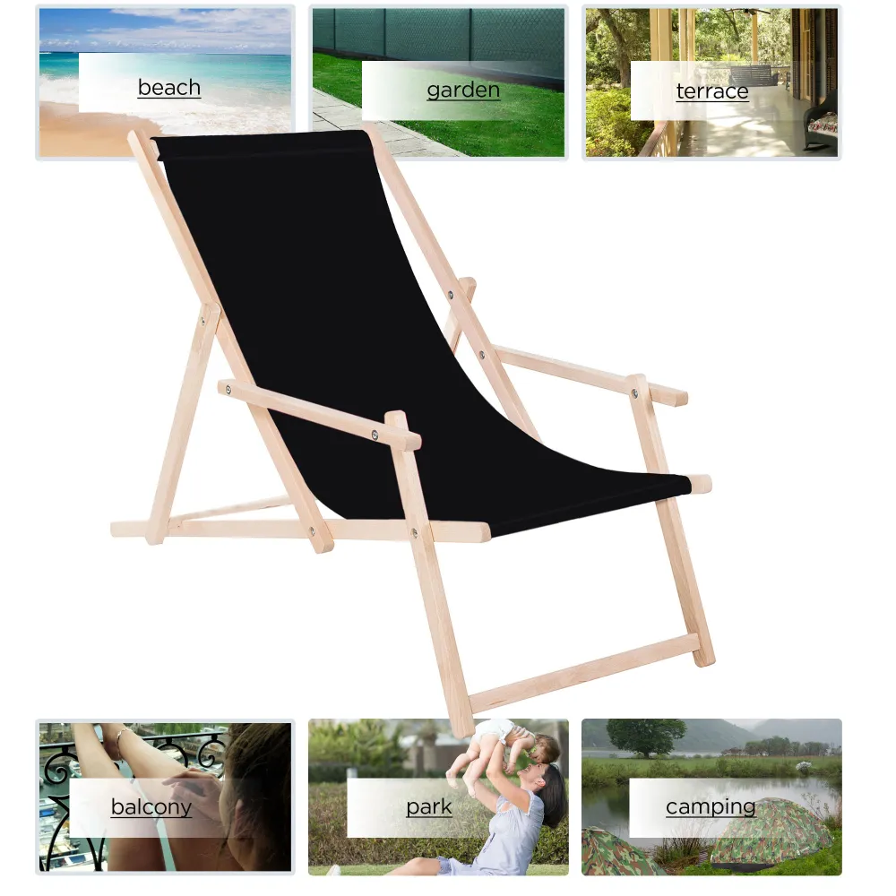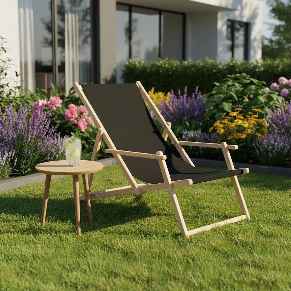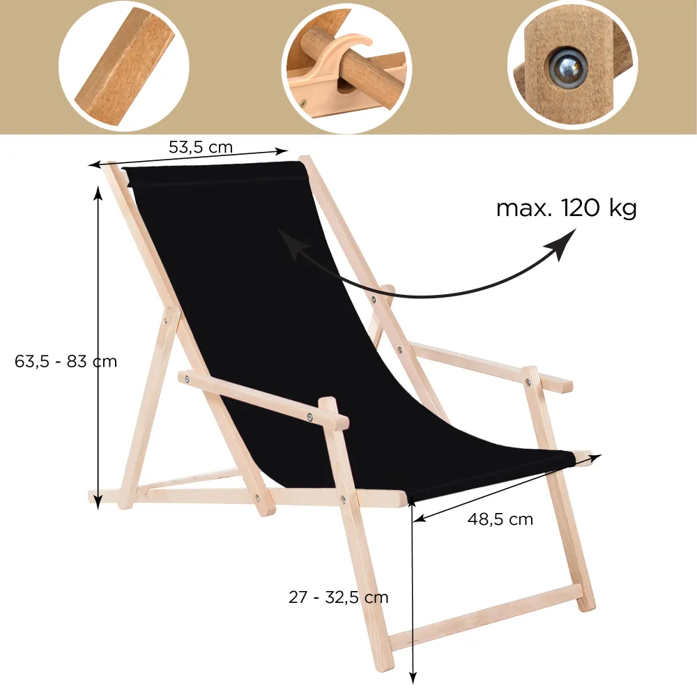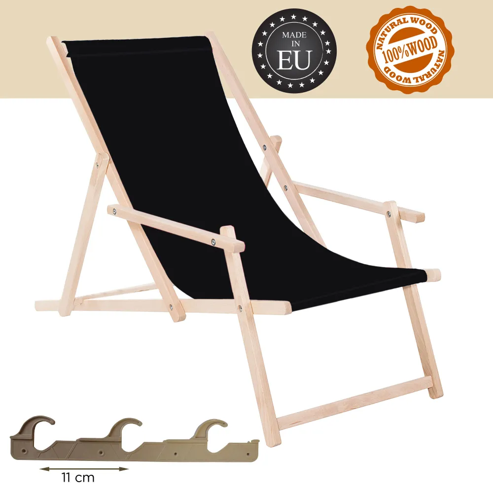 Záhradné drevené lehátko SPRINGOS TORINO čierne je ideálne pre relaxáciu na záhrade, terase aj v interiéri . Vďaka 3-stupňovému polohovaniu si ľahko nastavíte ideálnu pozíciu pre odpočinok. Opierky na ruky a pevný poťah zaisťujú maximálne pohodlie pri každom použití.