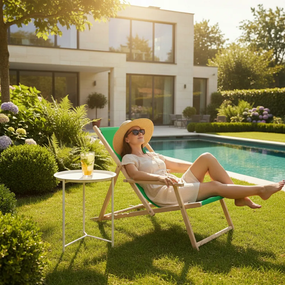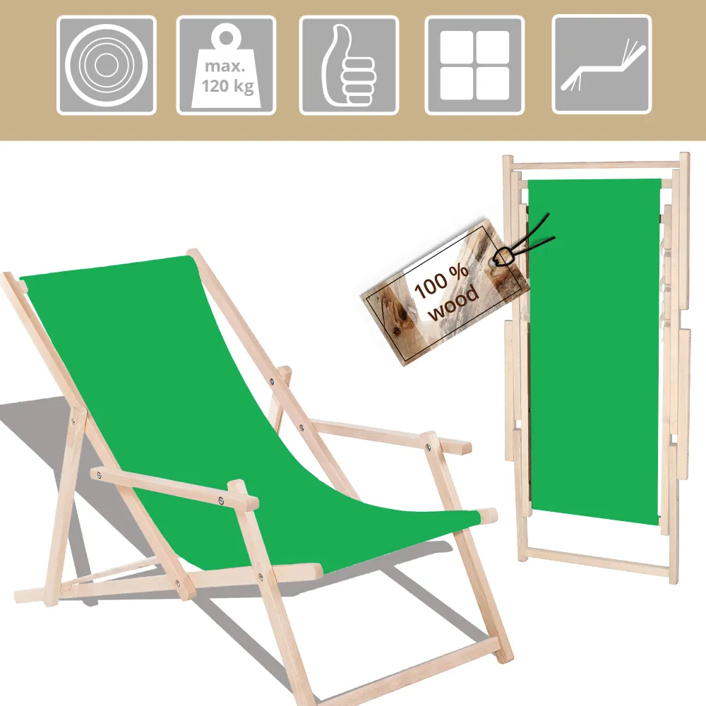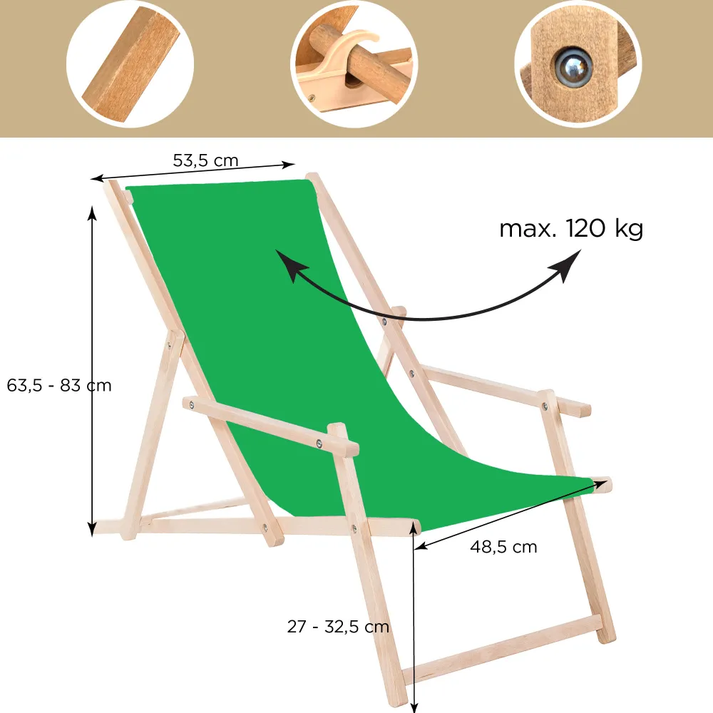 Konštrukcia z kvalitného bukového dreva zaručuje stabilitu a dlhú životnosť. Odolný textilný poťah je navrhnutý tak, aby vydržal UV žiarenie, vlhkosť i bežné opotrebenie . Bezpečnostná poistka zabraňuje nechcenému sklopeniu a zvyšuje celkovú bezpečnosť používania .